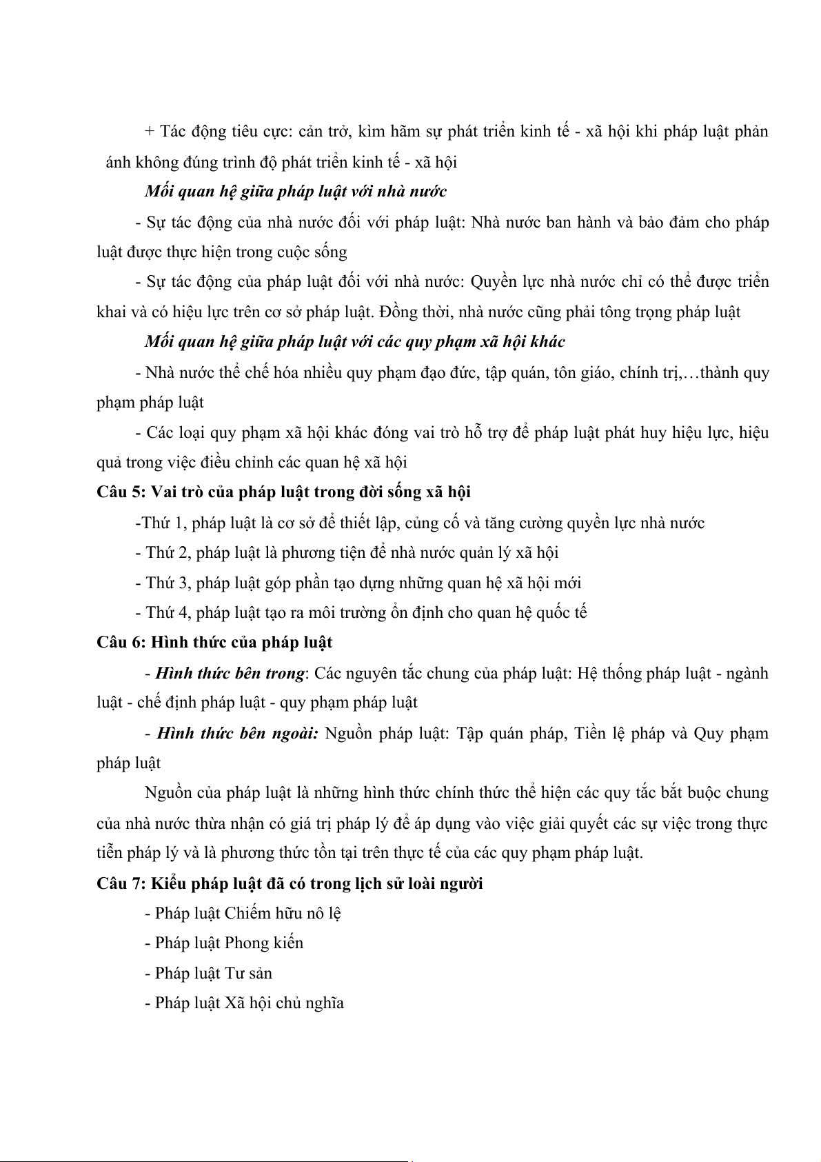 Câu 4: Mối liên hệ giữa pháp luật với các hiện tượng xã hội khác (nền kinh tế, nhà nước,