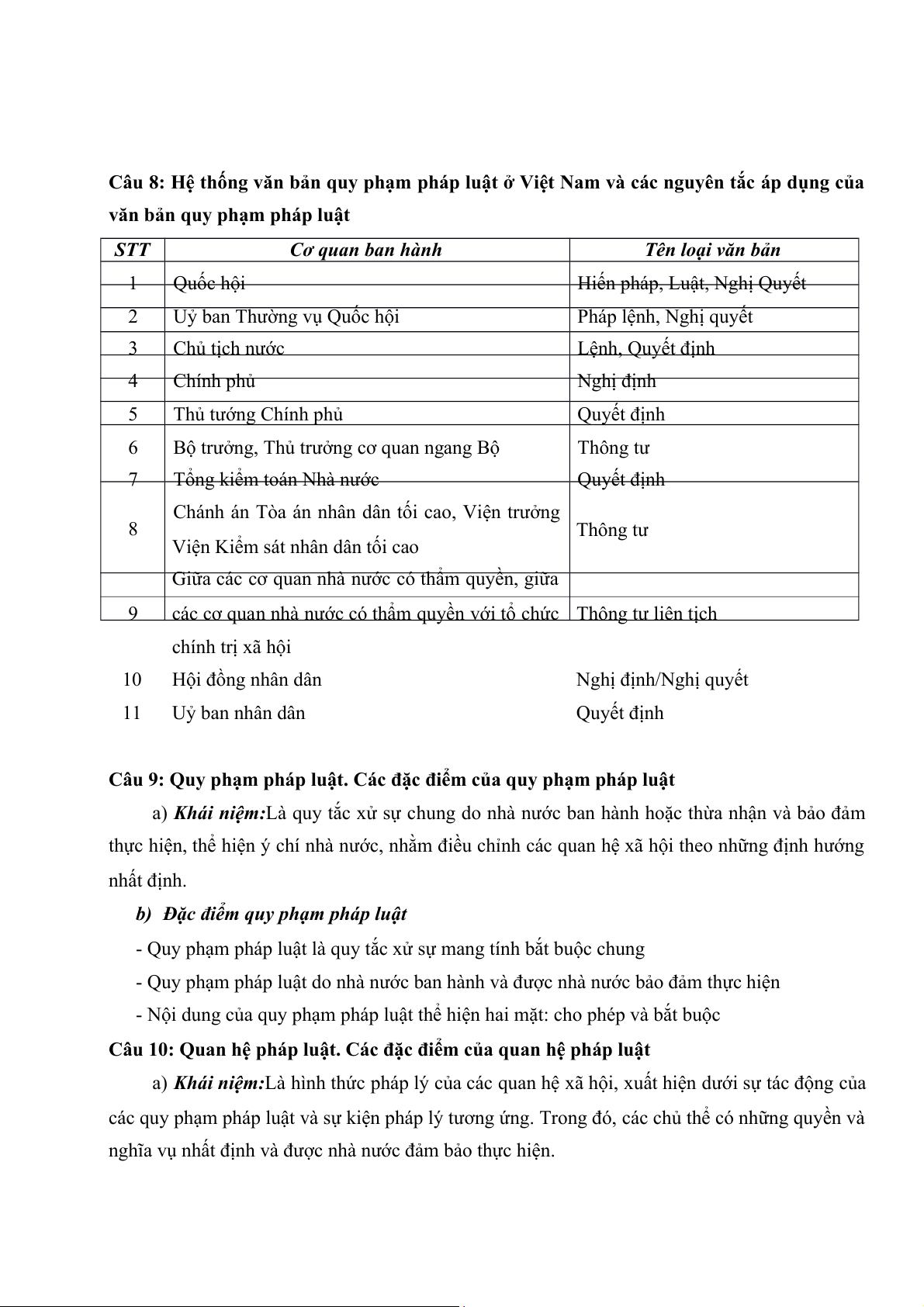 Câu 8: Hệ thống văn bản quy phạm pháp luật ở Việt Nam và các nguyên tắc áp dụng của
