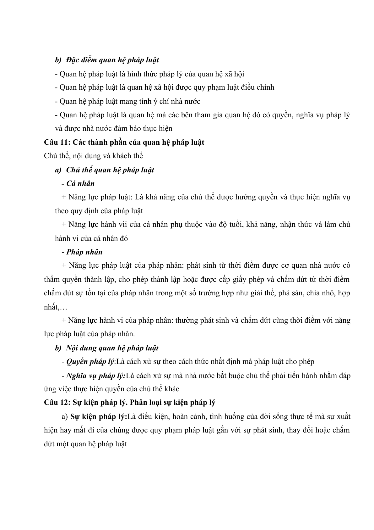 Câu 11: Các thành phần của quan hệ pháp luật