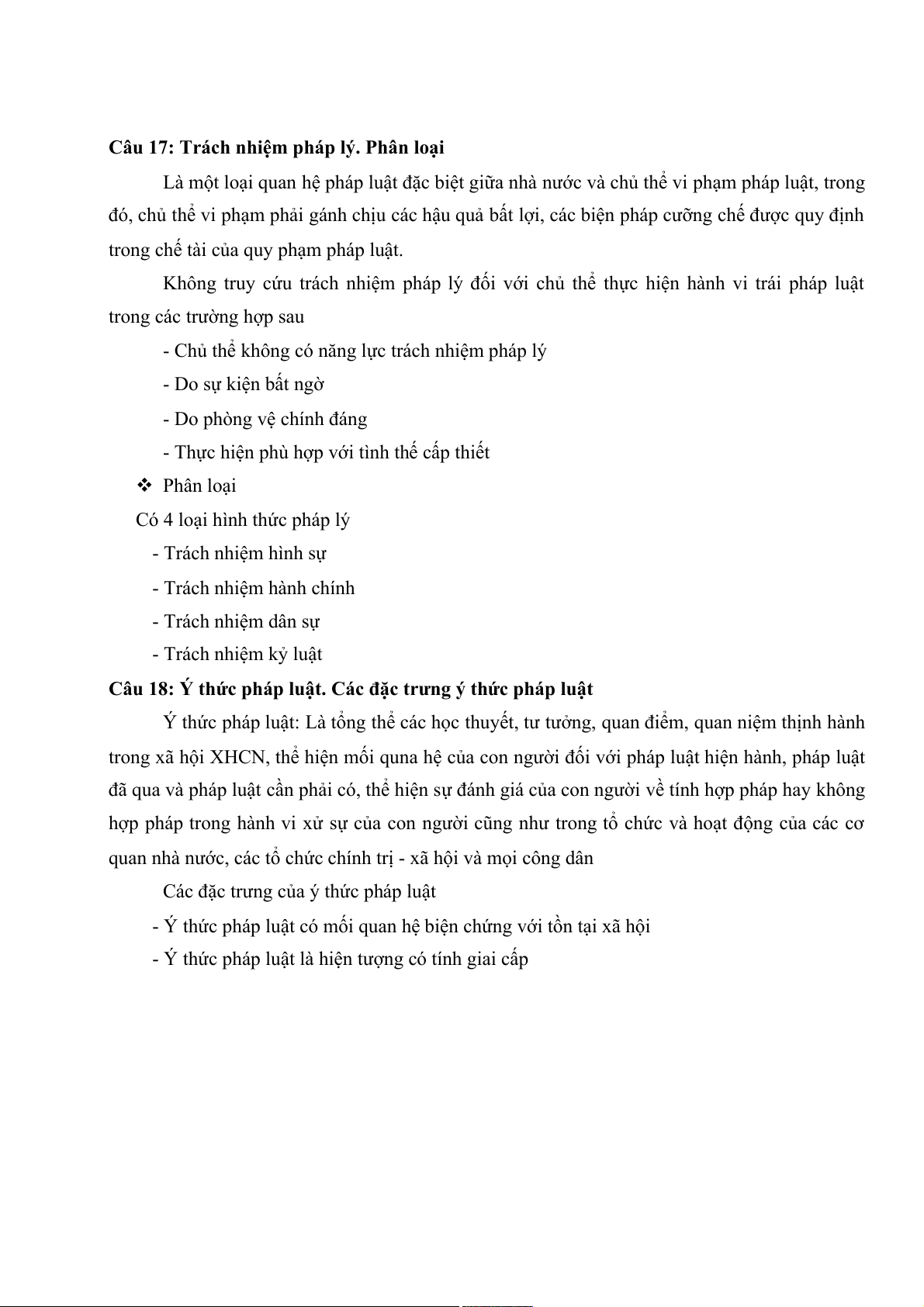 Câu 17: Trách nhiệm pháp lý. Phân loại