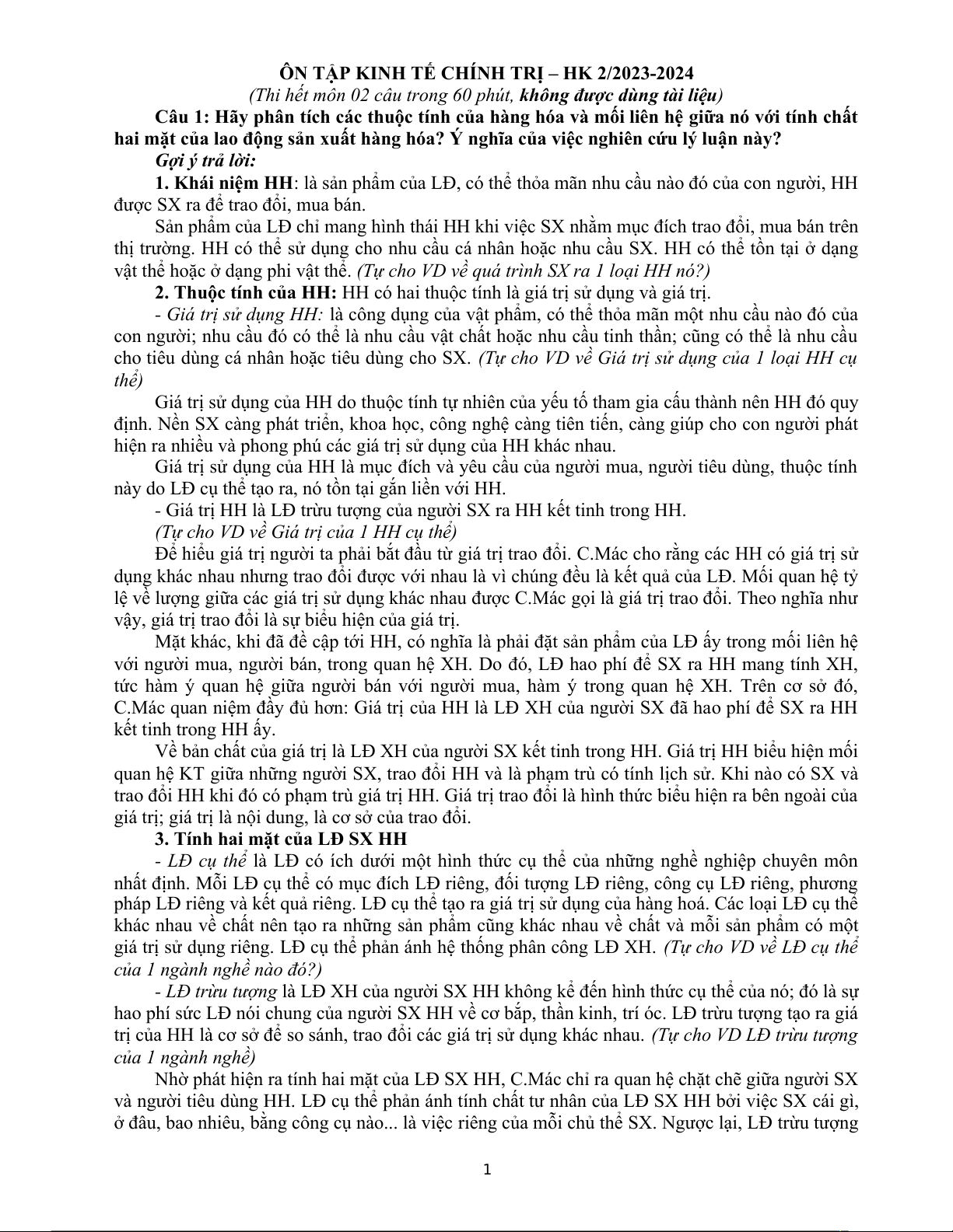 ÔN TẬP KINH T CHNH TR – HK 2/2023-2024