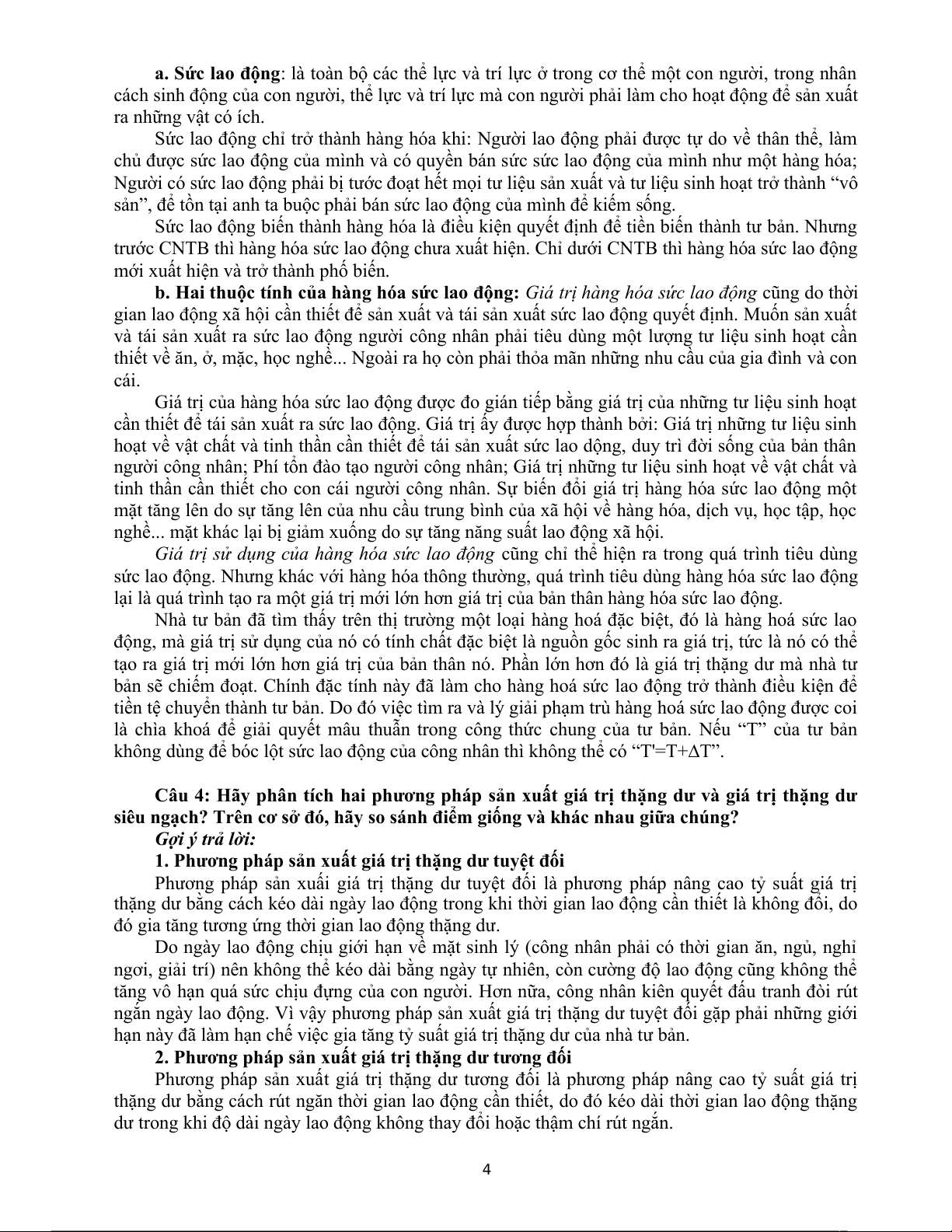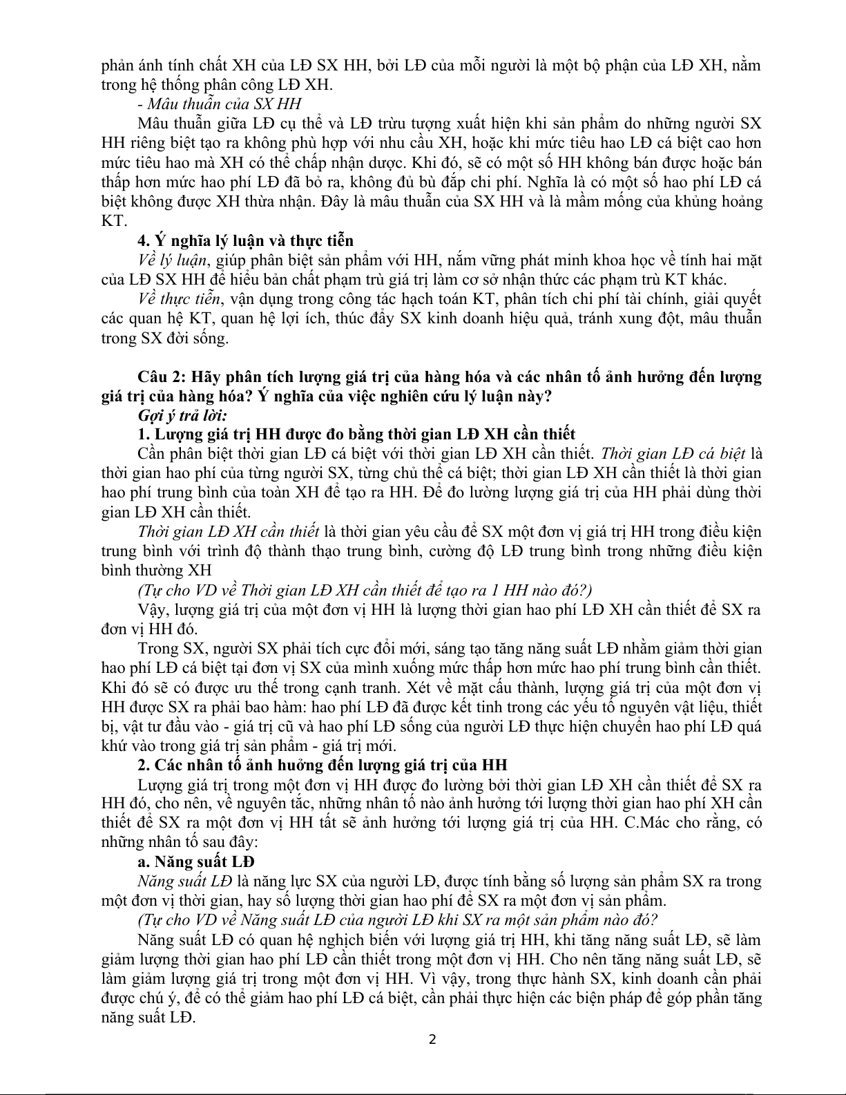 Câu 2: Hãy phân tích lượng giá trị của hàng hóa và các nhân tố ảnh hưởng đến lượng