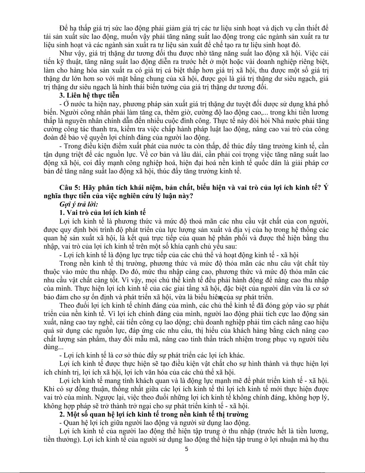tiền thưởng). Lợi ích kinh tế của người sử dụng lao động thể hiện tập trung ở lợi nhuận mà họ thu 5