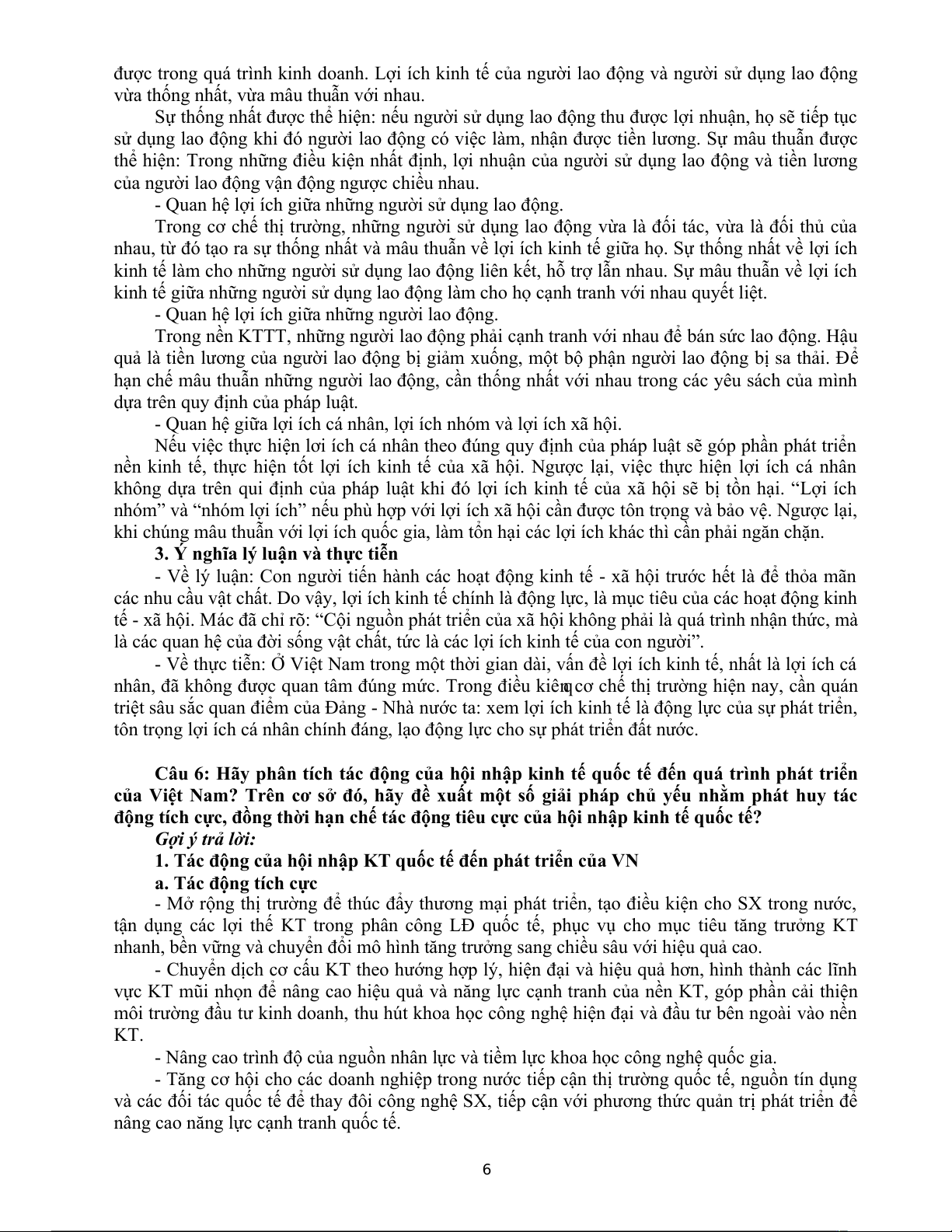 Câu 6: Hãy phân tích tác động của hội nhập kinh tế quốc tế đến quá trình phát triển