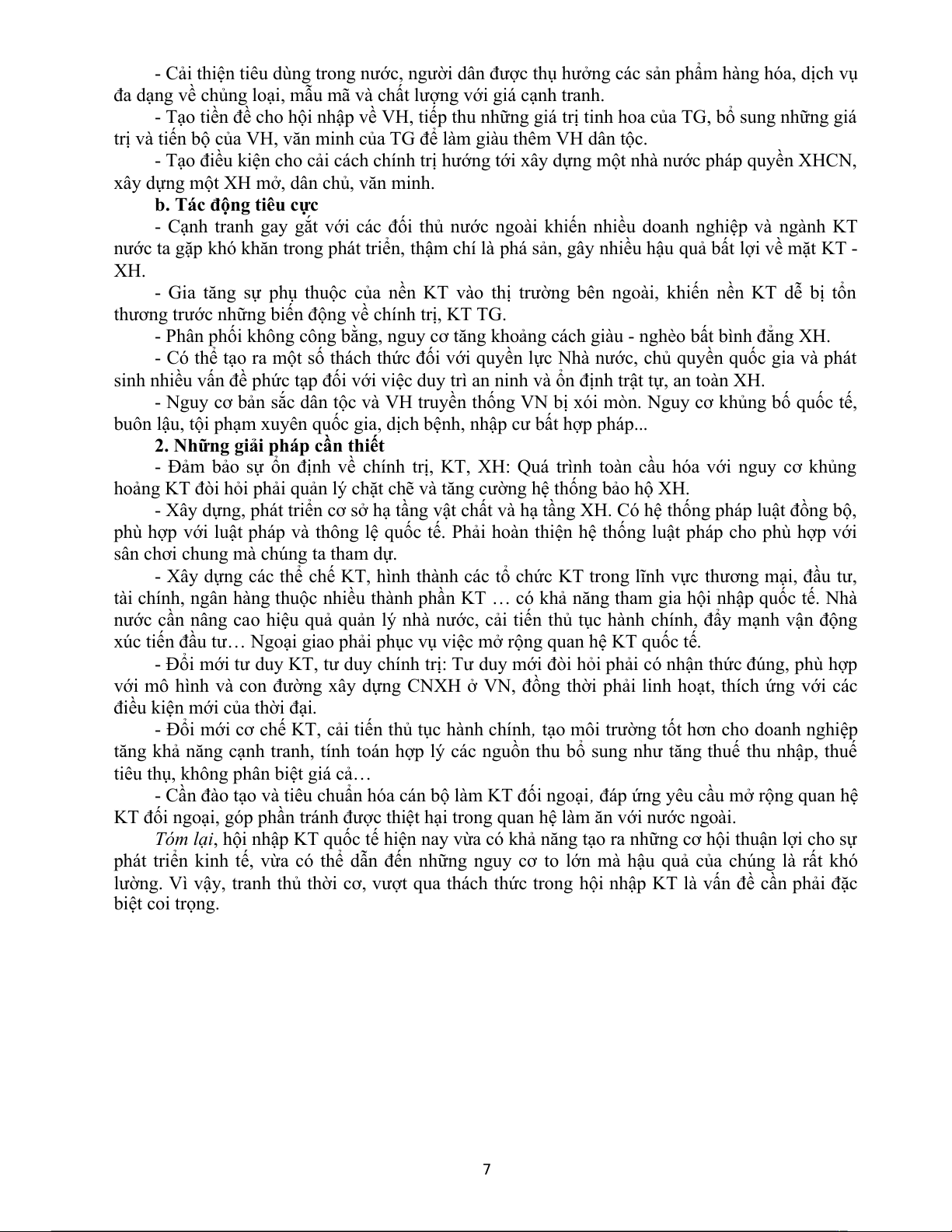 lường. Vì vậy, tranh thủ thời cơ, vượt qua thách thức trong hội nhập KT là vấn đề cần phải đặc biệt coi trọng. 7