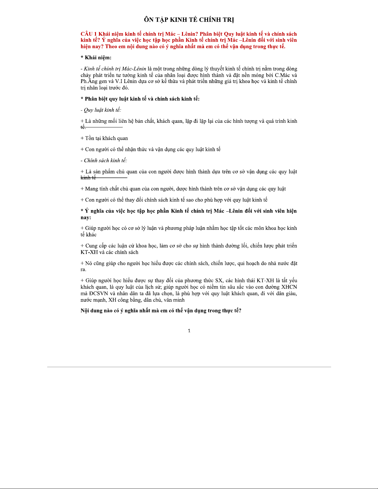 ÔN TẬP KINH TẾ CHÍNH TRỊ MÁC-LÊNIN: CÂU HỎI & PHÂN TÍCH