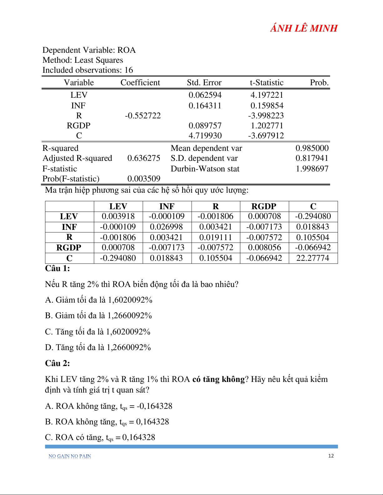 C. ROA có tăng, tqs = 0,164328 12 ÁNH LÊ MINH