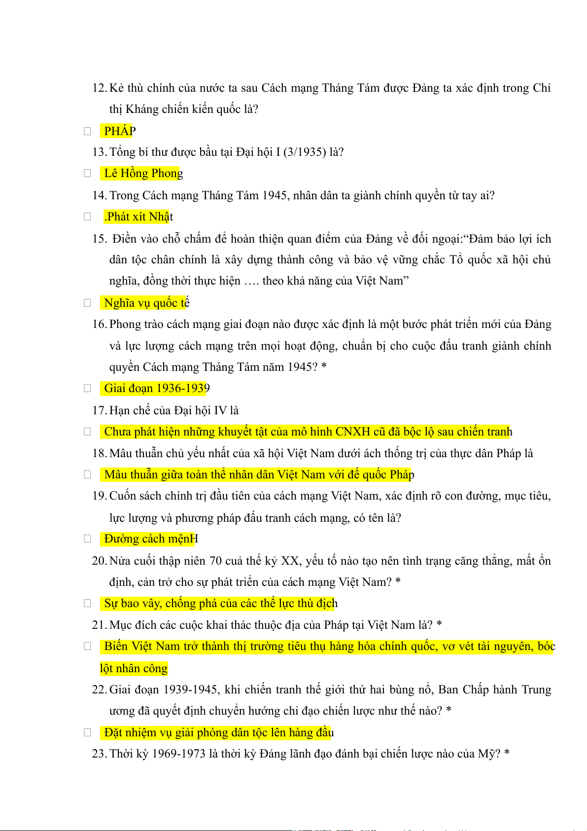 13. Tổng bí thư được bầu tại Đại hội I (3/1935) là? Lê Hồng Phong