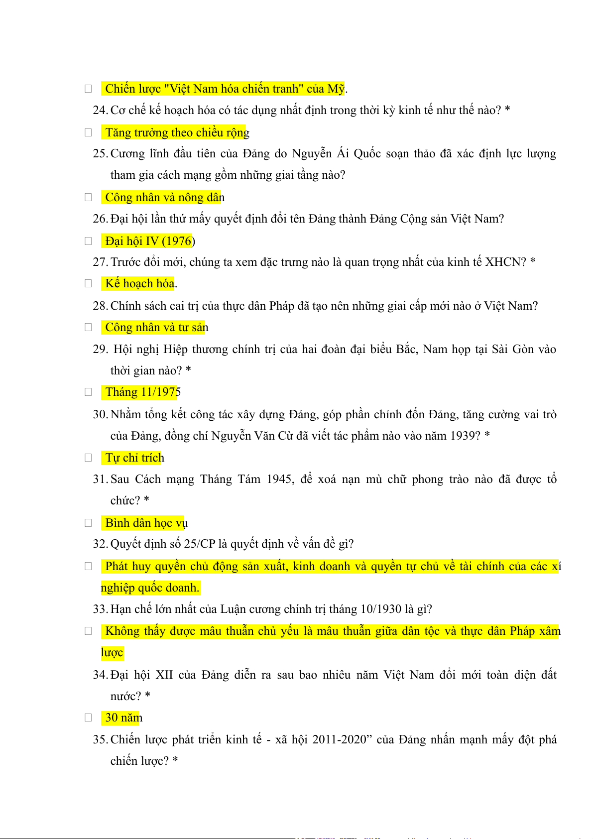 34. Đại hội XII của Đảng diễn ra sau bao nhiêu năm Việt Nam đổi mới toàn diện đất nước? * 30 năm