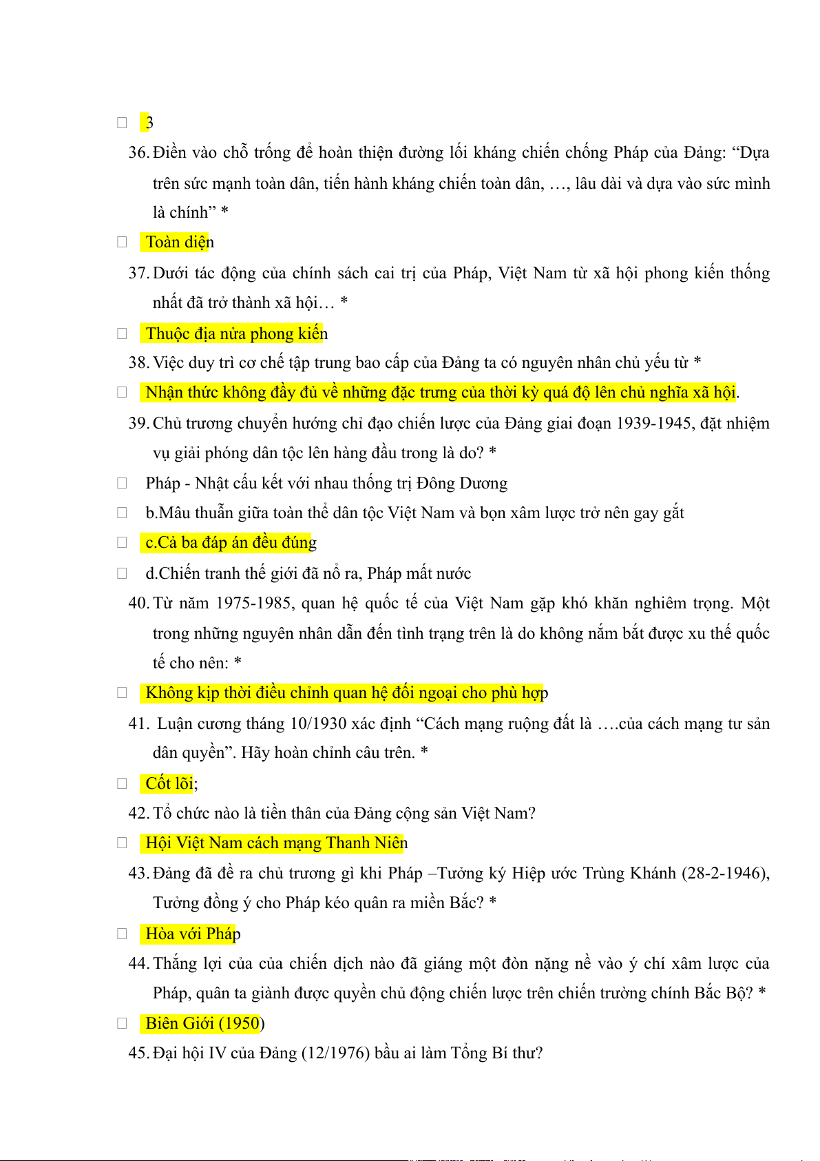 48. Ai là Chủ tịch ủy ban dân tộc giải phóng (chính phủ lâm thời tháng 8 năm 1945) * Hồ Chí Minh