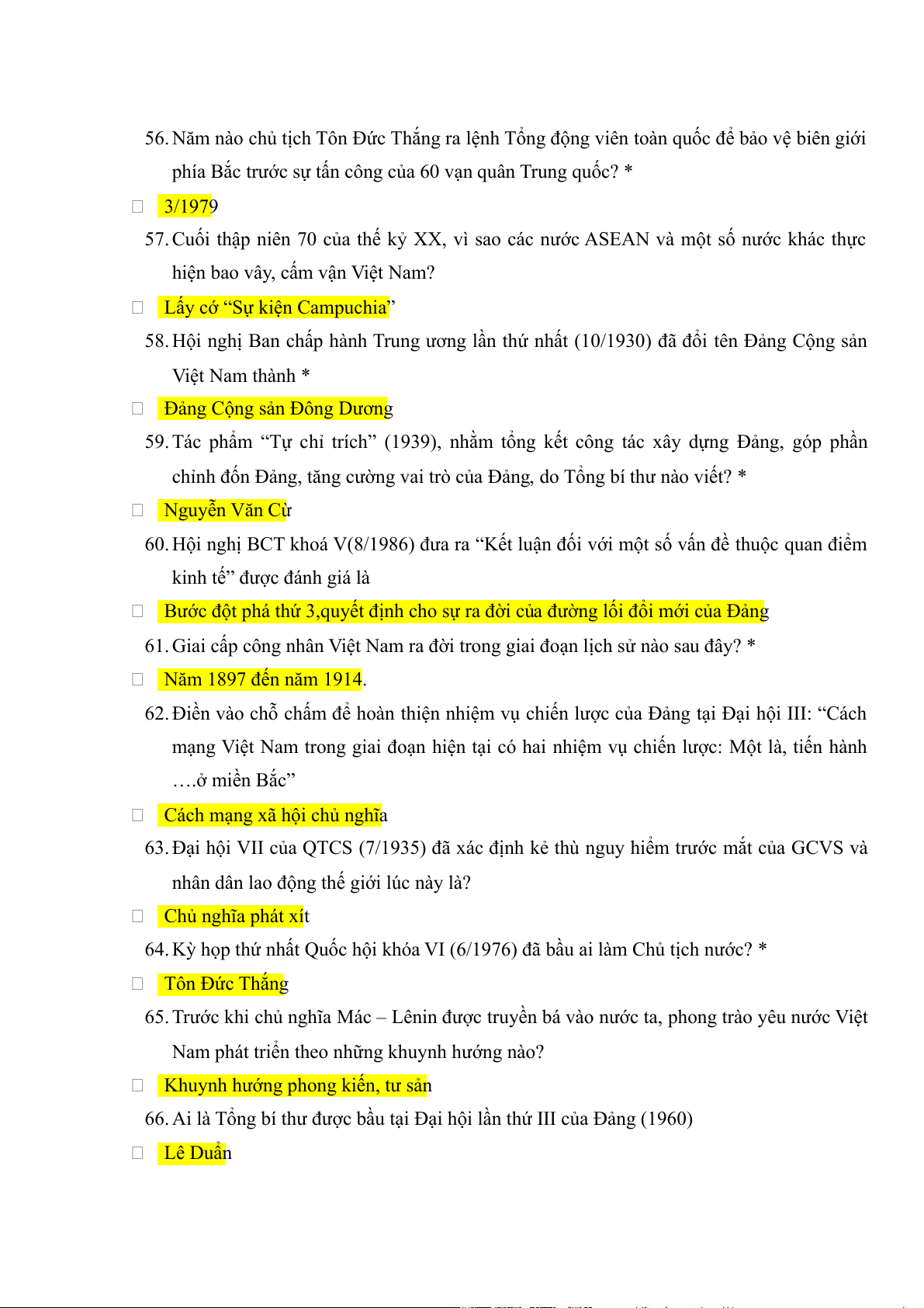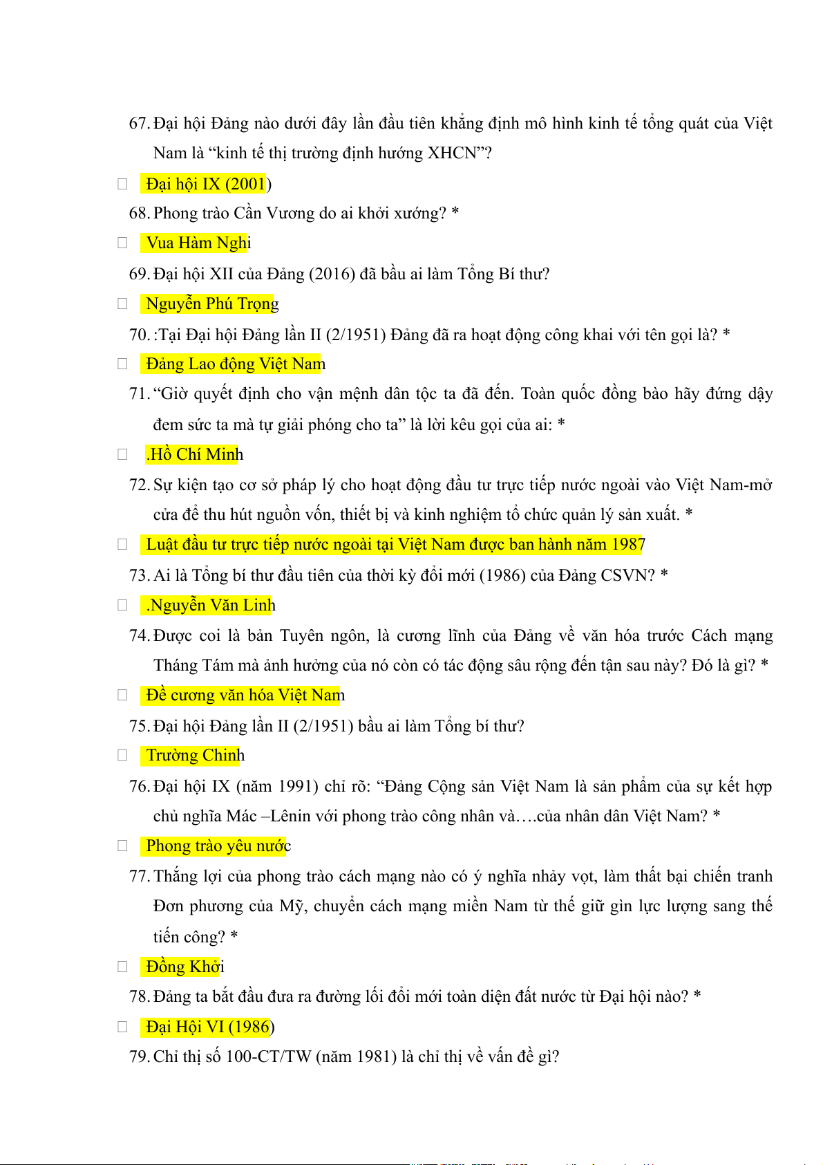 73. Ai là Tổng bí thư đầu tiên của thời kỳ đổi mới (1986) của Đảng CSVN? * .Nguyễn Văn Linh