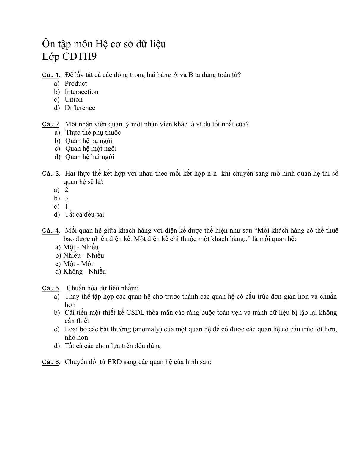 Ôn tập môn Hệ cơ sở dữ liệu Lớp CDTH9