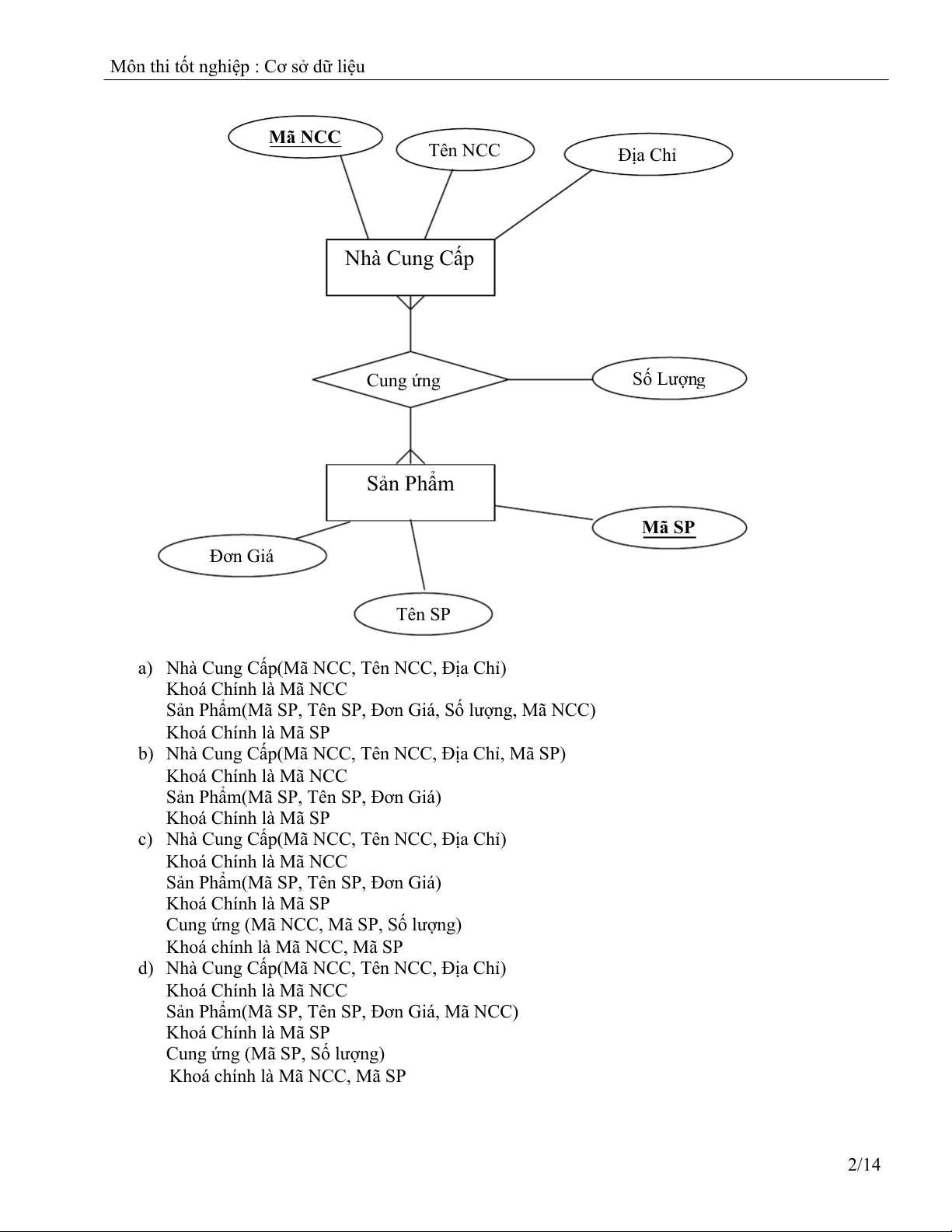 Môn thi tốt nghiệp : Cơ sở dữ liệu a)
