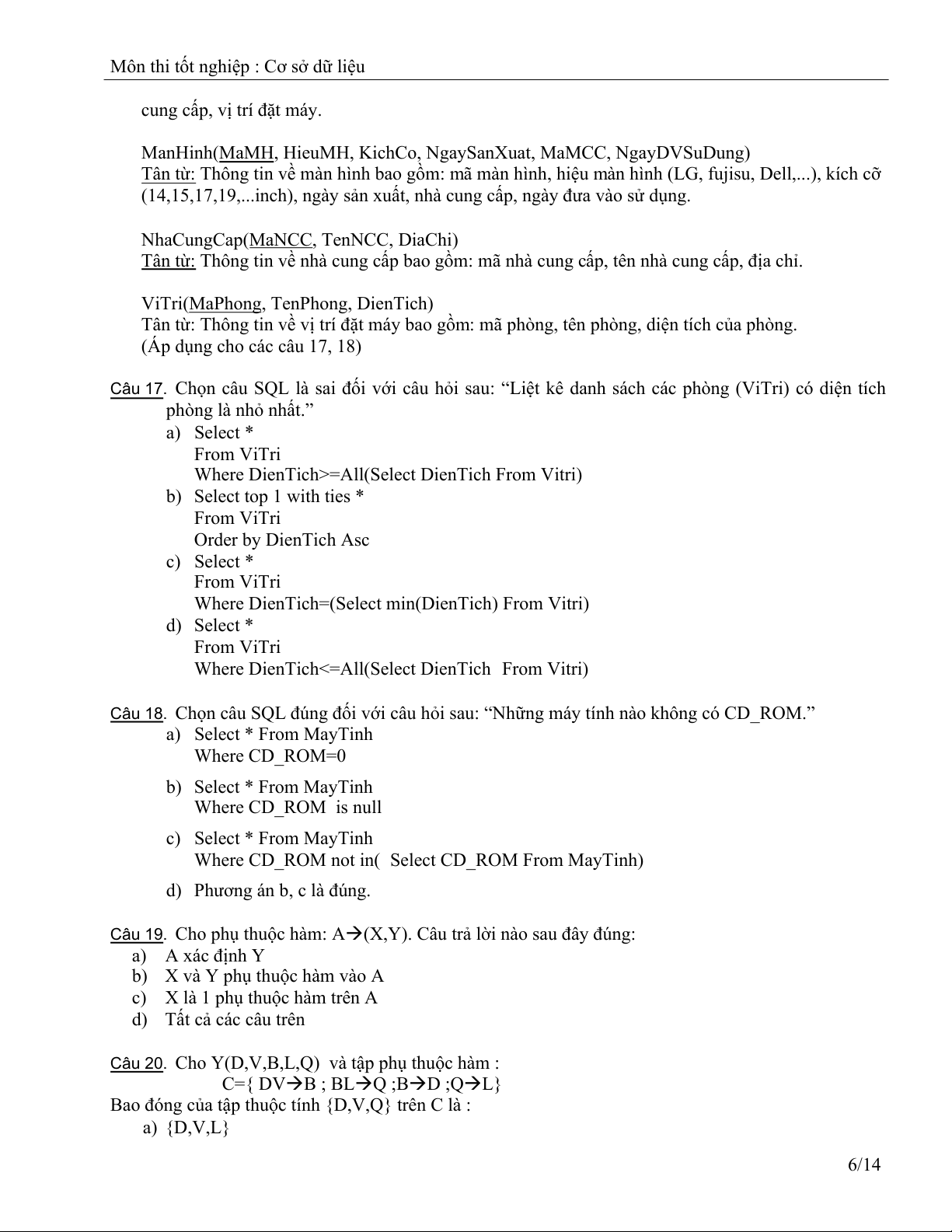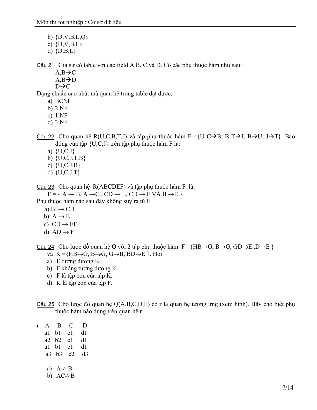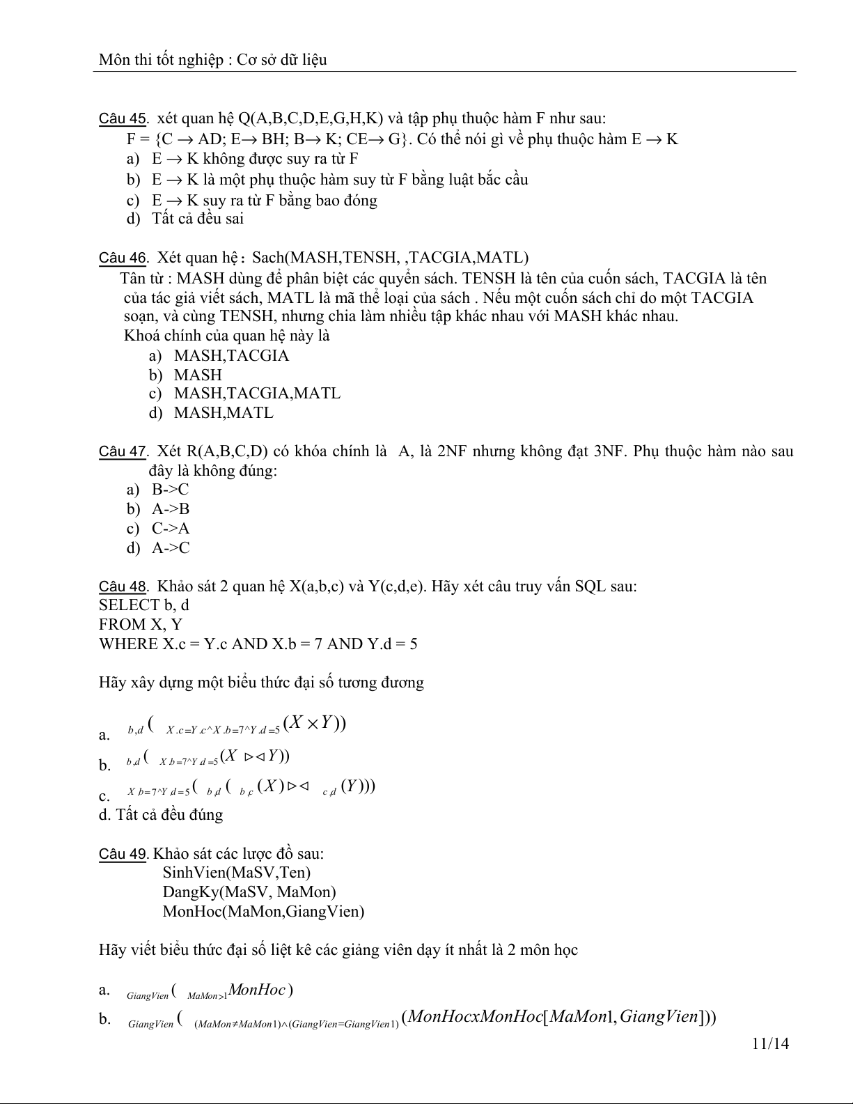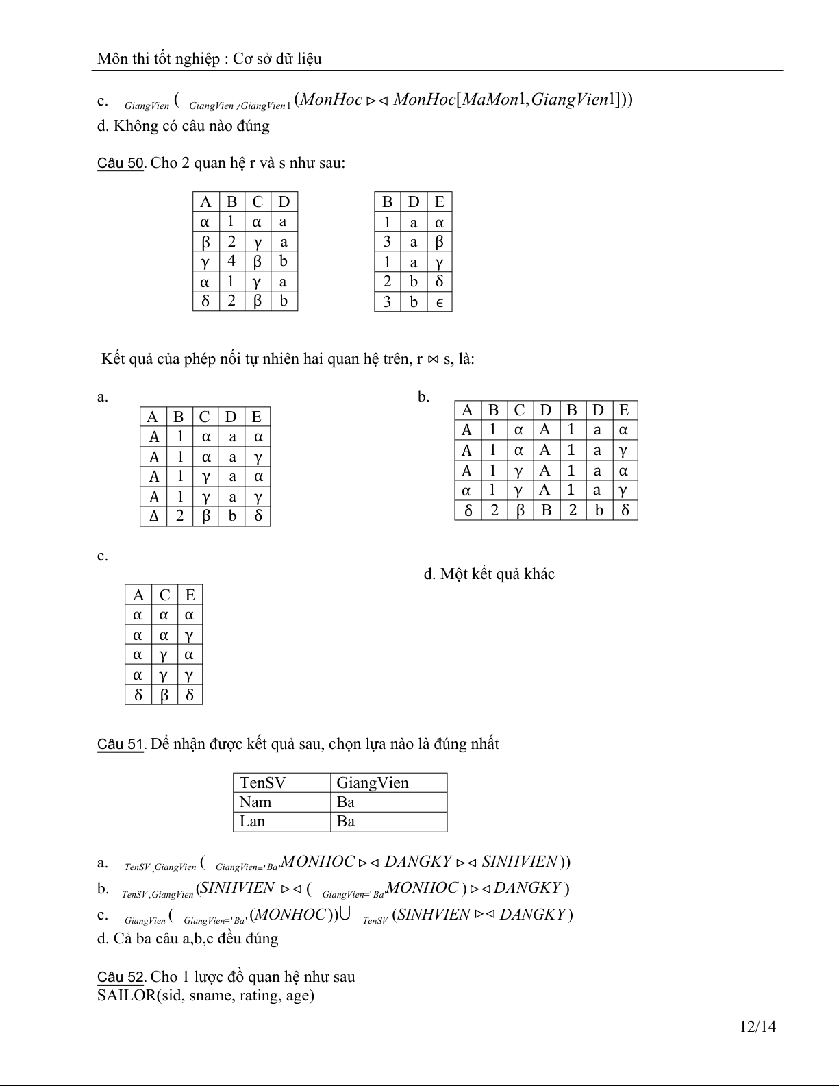 Môn thi tốt nghiệp : Cơ sở dữ liệu c. π (σ