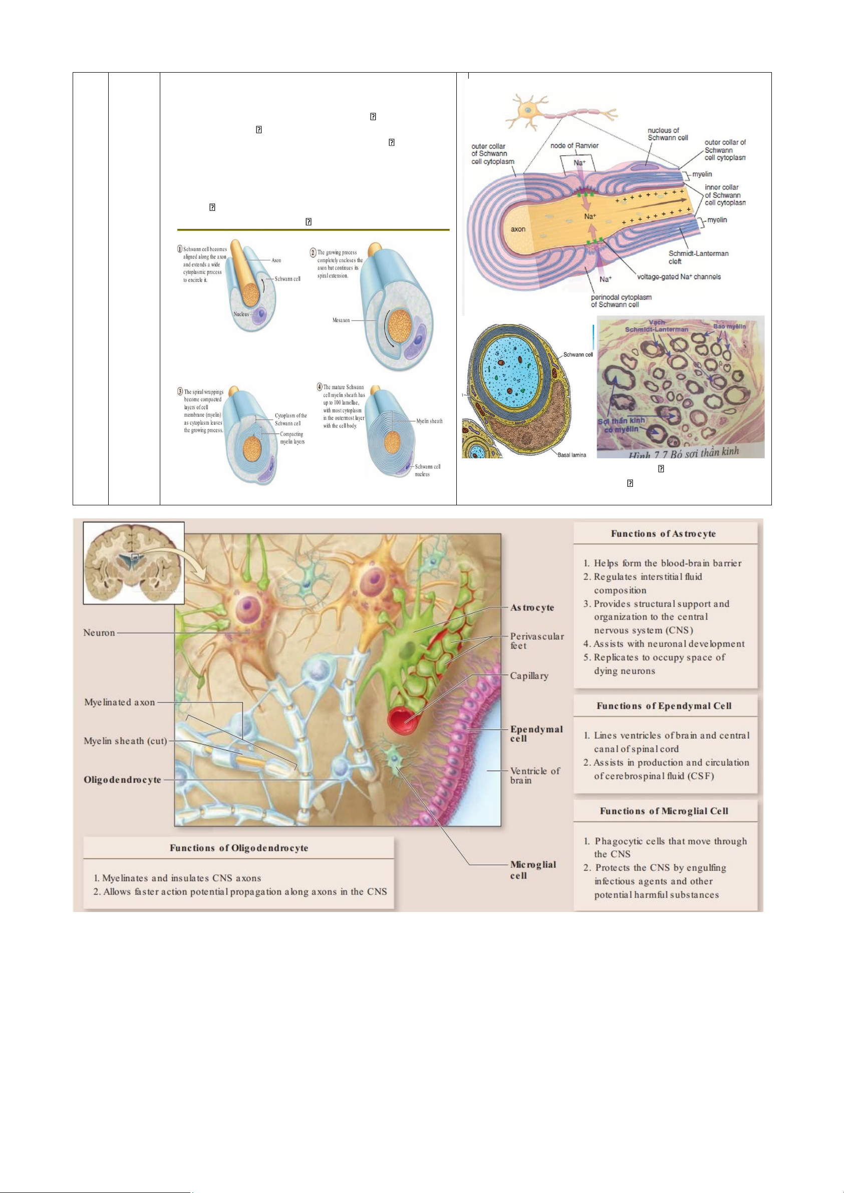 thể tạo nhiều bao myelin cho nhiều nhánh neuron, tb Schwann thì chỉ tạo được bao myelin cho 1 đoạn nhánh neuron > nuôi dưỡng,