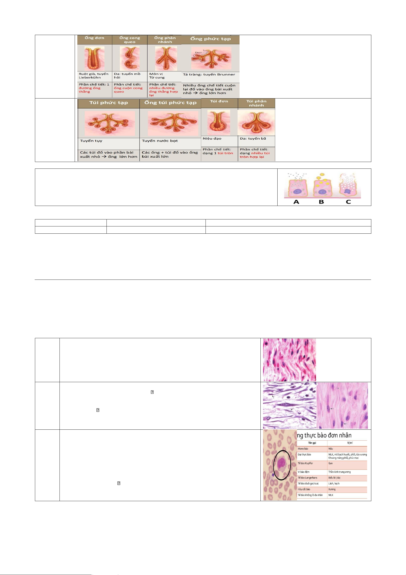 - tuyến là chỗ lõm trong biểu mô, tại đó tập trung nhiều tb đài và 1 ít tb trụ có lông chuyển lOMoAR cPSD| 47207367 Tuyến ống Tuyến túi