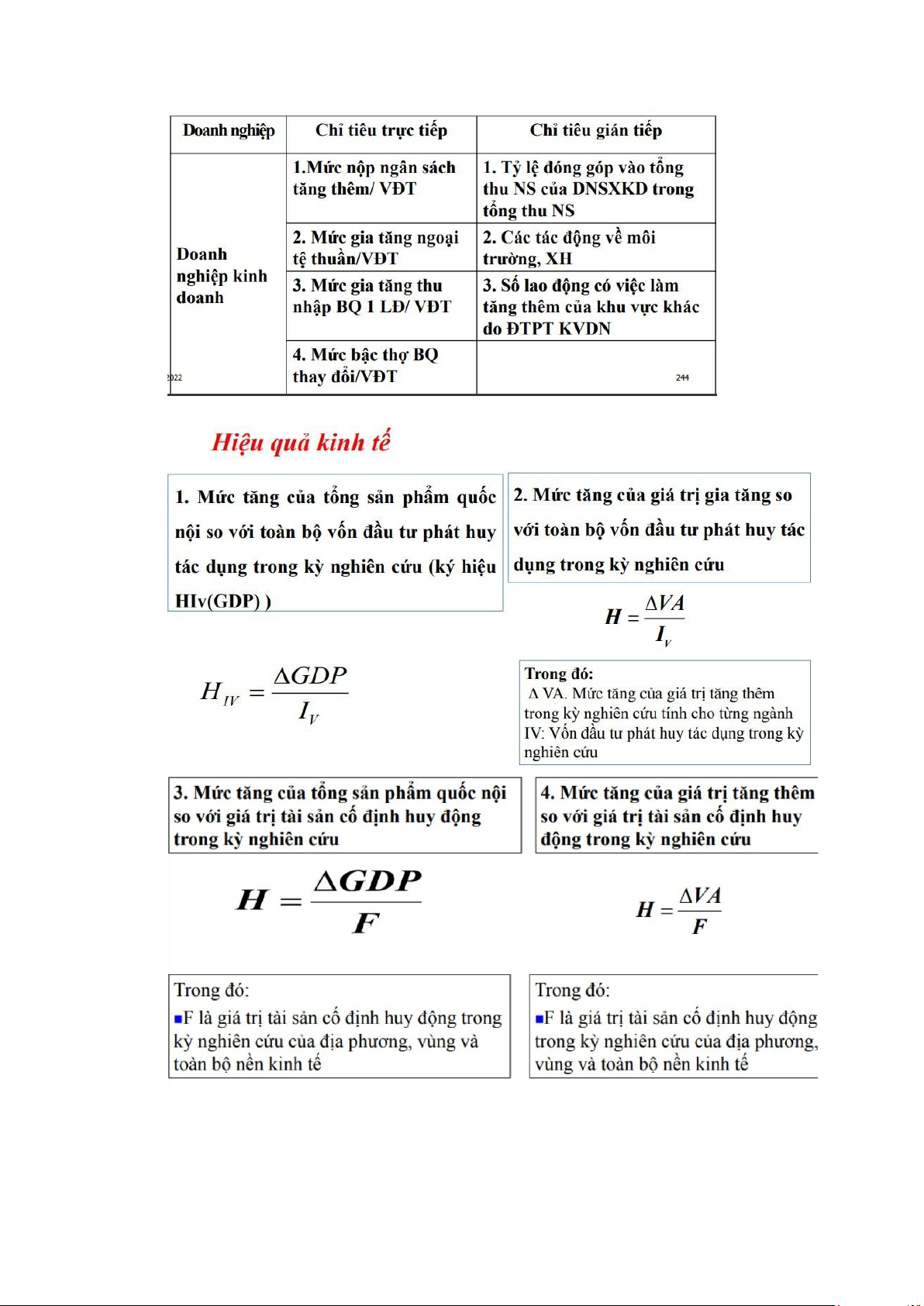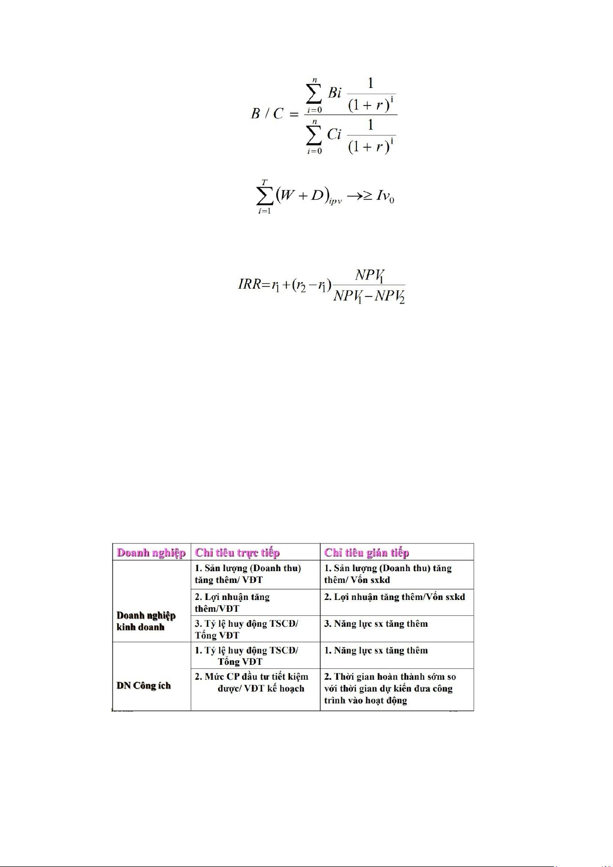 + so sánh kết quả kt-xh đã đạt được của hoạt động đầu tư với các chi phí phải bỏ