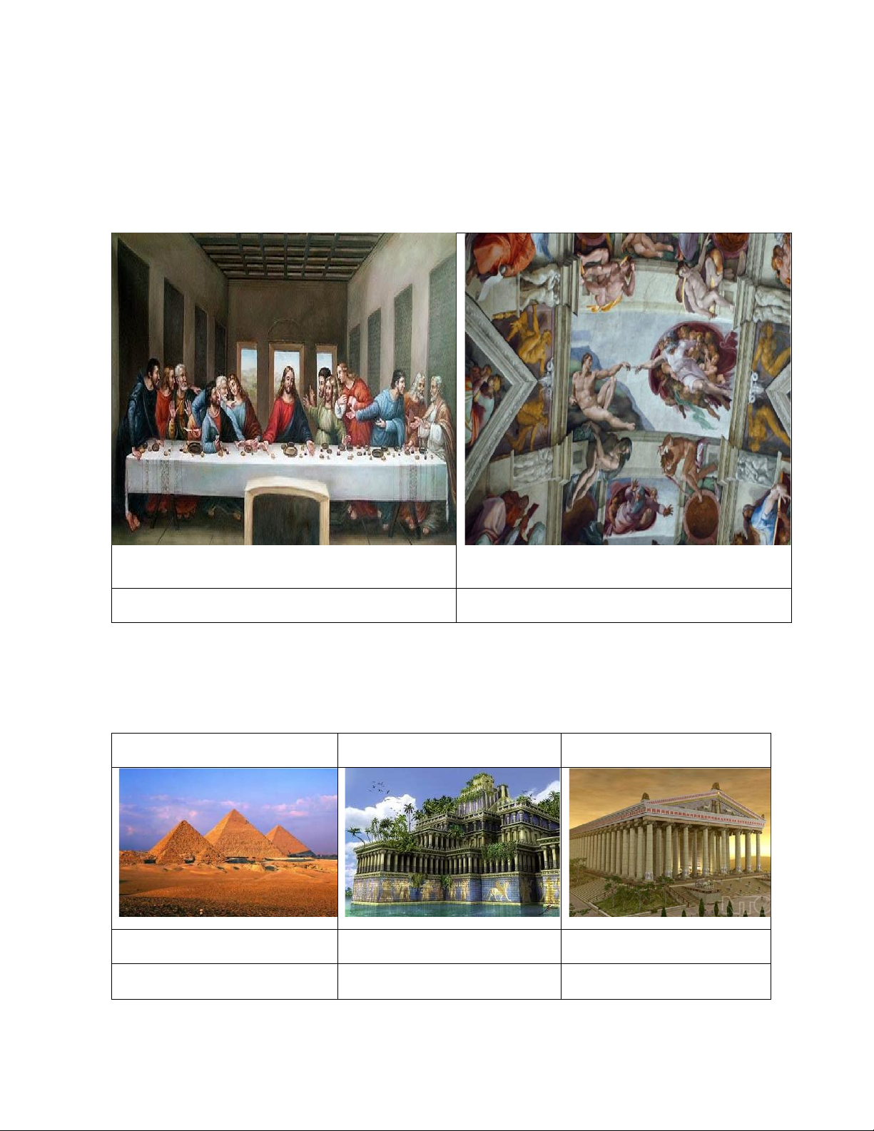 I.2: Qua những hình ảnh dưới đây hãy cho biết tên 7 kỳ quan của thế giới cổ đại. Qua đó,