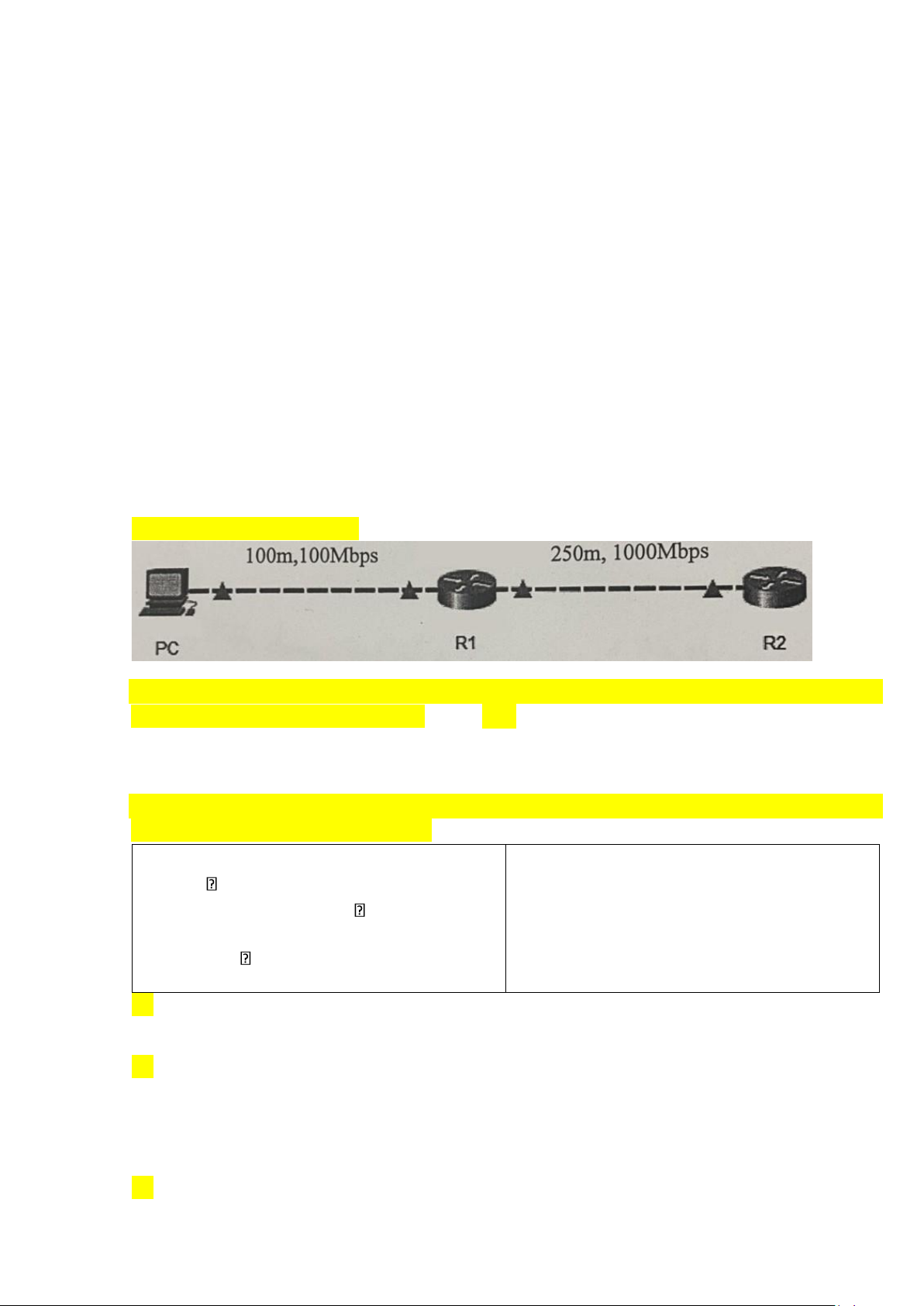 PC gửi gói tin kích thước 1200 byte tới nút mạng R2. Bỏ qua dproc và dqueue, tính dPC-to-R2, biết