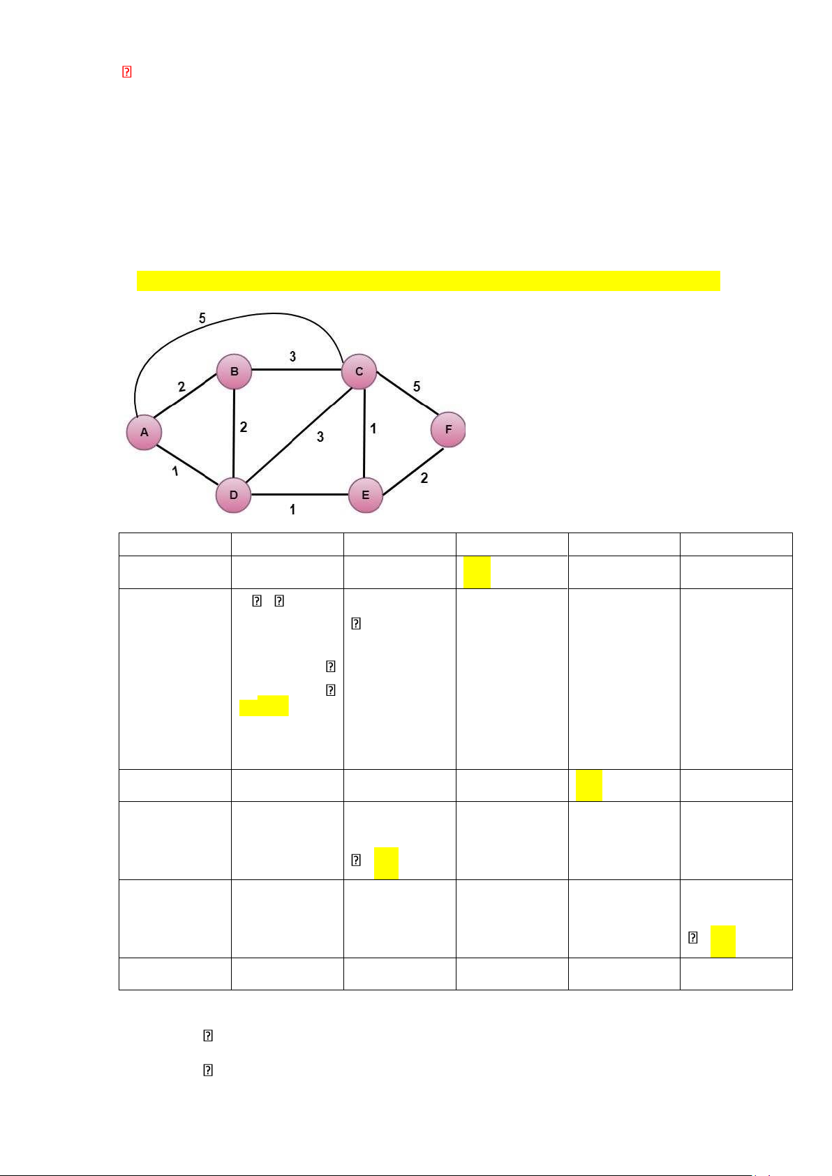 9. Tìm đường thuật toán Link state. Xác định đường đi từ nút A đến các nút con lại    N’  D(B),p(B)  D(C),p(C)  D(D),p(D)  D(E),p(E)  D(F),p(F)  A  2,A  5,A   1,A  ∞  ∞  A,D  ADB=  So sánh (4,5)  2,D  ∞