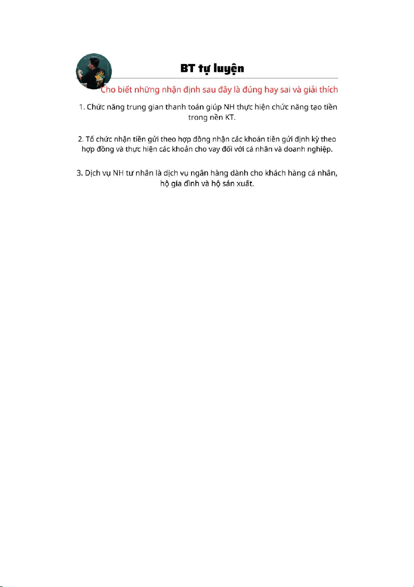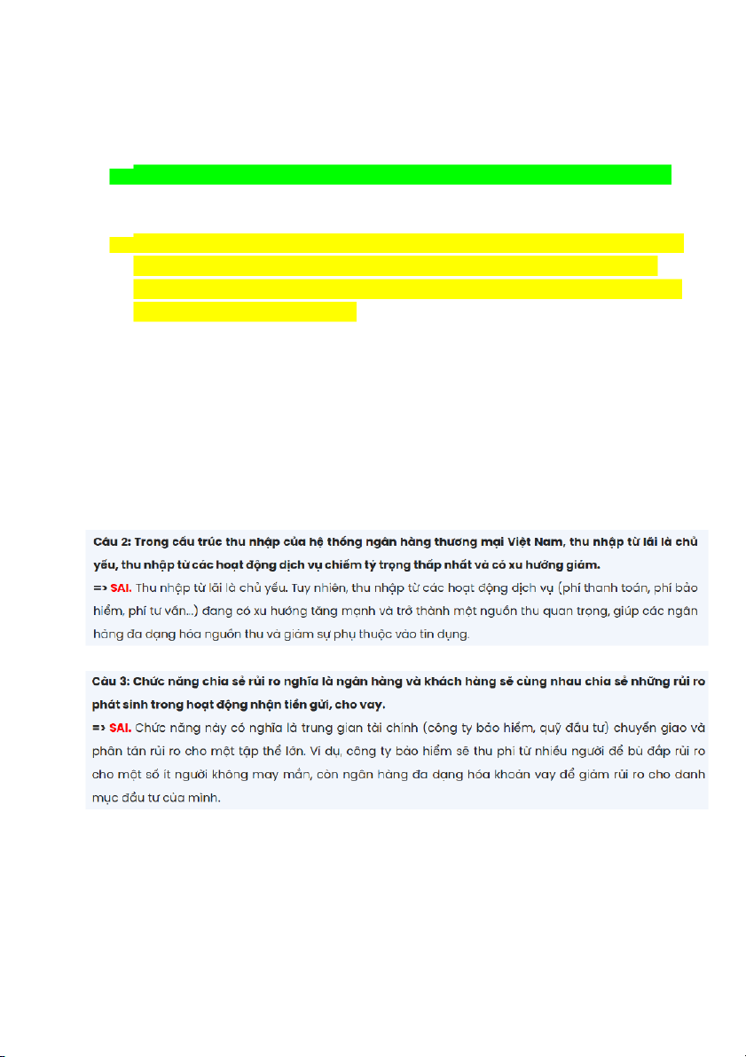 1. Đúng. NHTM cung cấp các phương tiện thanh toán không dùng tiền mặt. Khi