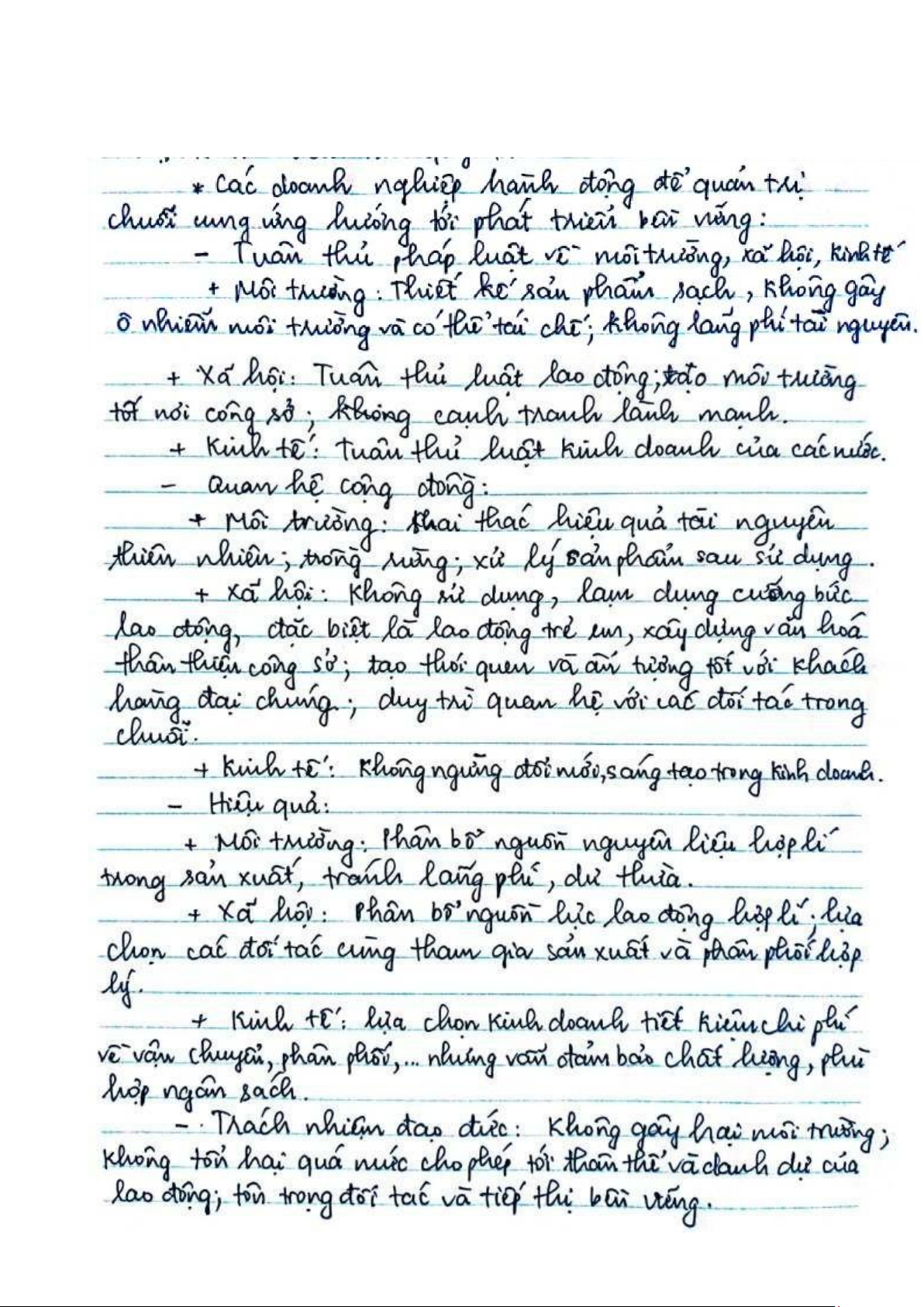 Câu 8: Tính bền vững trong chuỗi cung ứng là gì? Các doanh nghiệp cần làm gì để quản trị