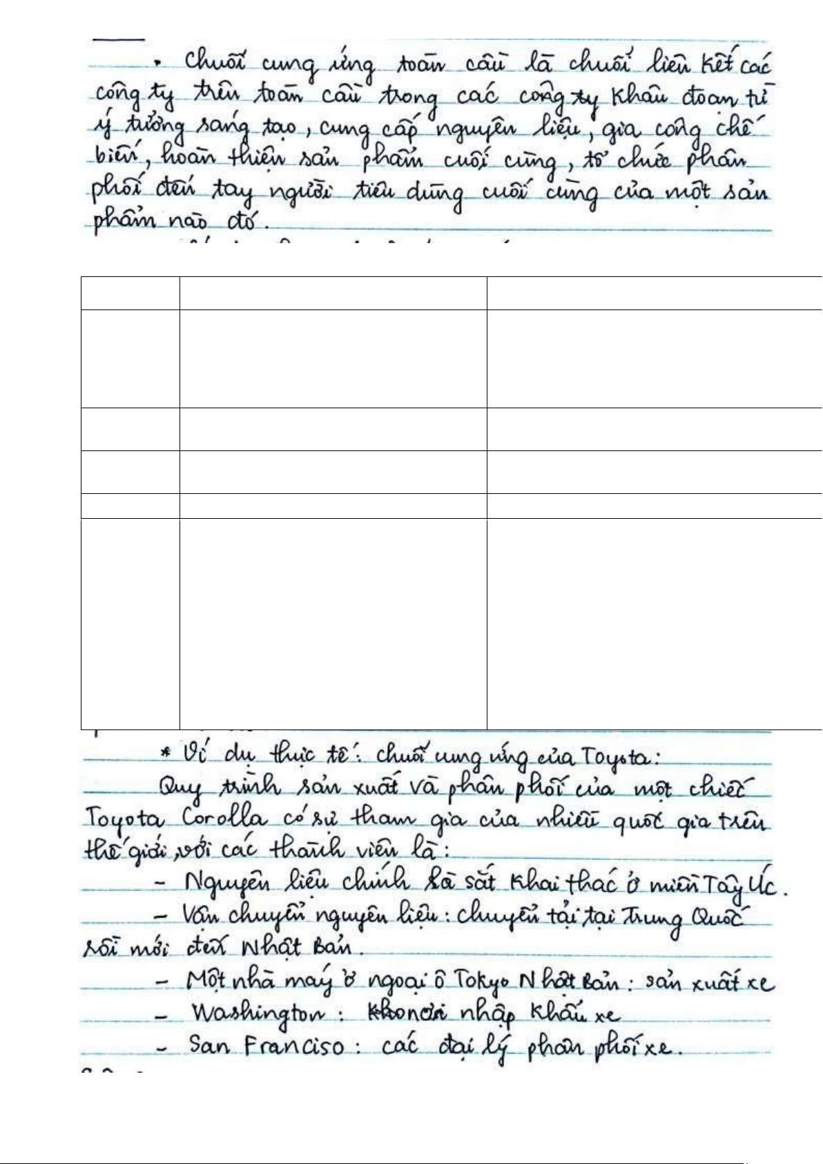 Câu 20: Vai trò của chuỗi cung ứng trong kinh doanh quốc tế. Lấy ví dụ minh họa. - Khái niệm chuỗi cung ứng: