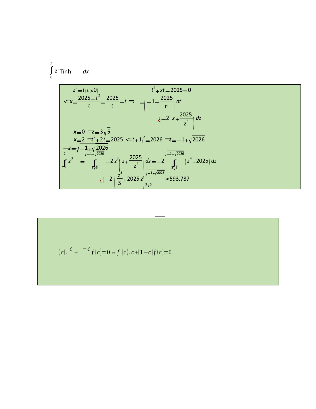 z4+x z2=2025 (¿ ) Câu 3: Đặt Cho khi đó (*) trở thành: hàm dx số f ( x ) liên Với Với tục trên [ dx 0;1], khả vi