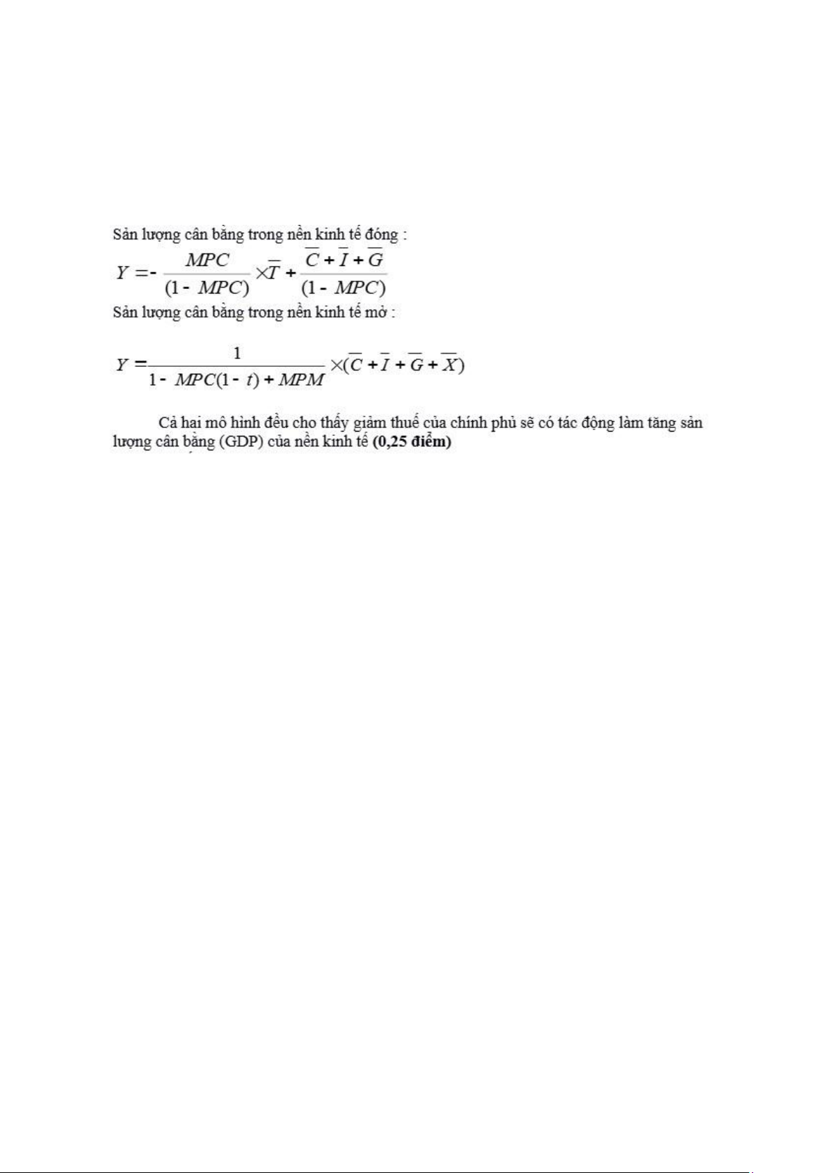 Vì vậy chính phủ cần phải tăng chi tiêu và tăng một lượng là 300 Câu 1: