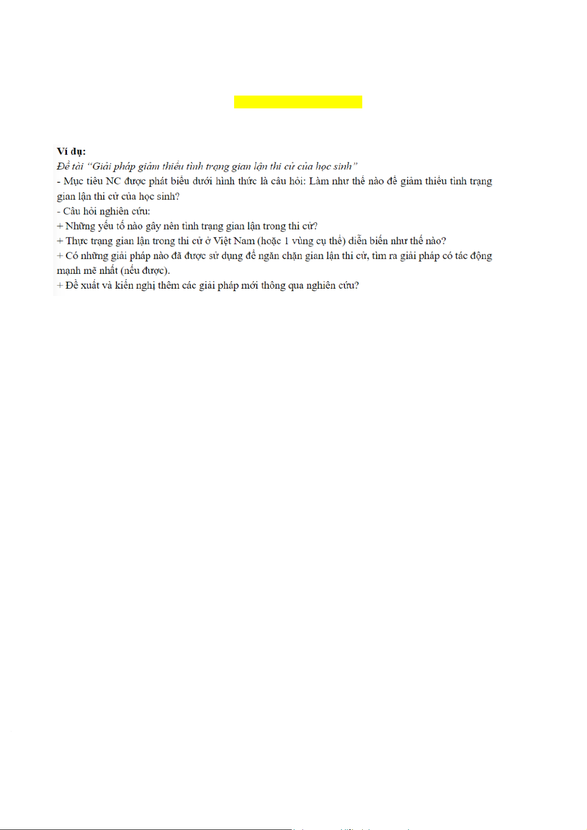 + Mục tiêu, đối tượng NC cần phải rõ ràng, cụ thể,