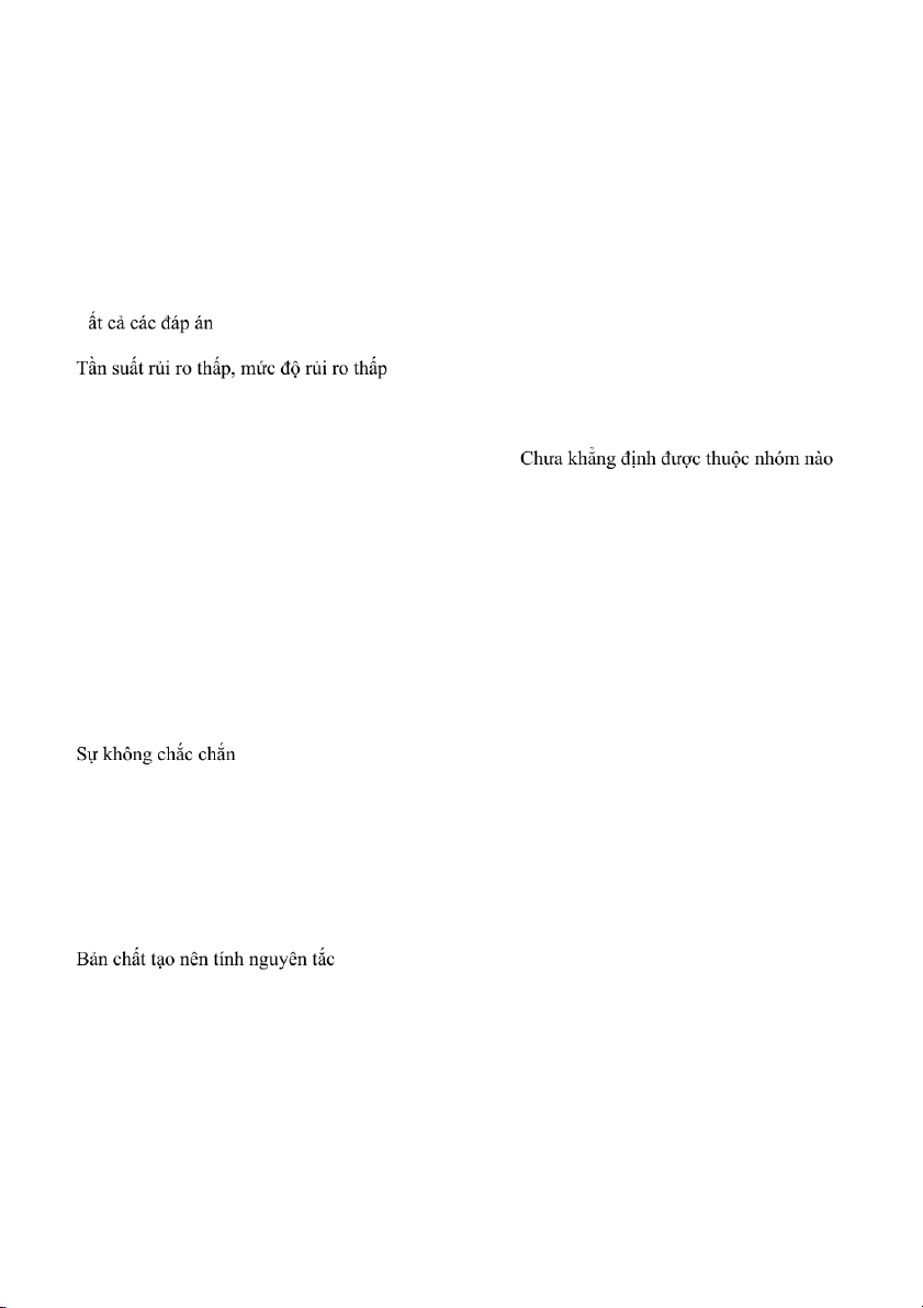 Câu 12: Dựa vào tiêu chí tính chất của rủi ro thì rủi ro được chia thành các loại sau: Không có đáp án đúng