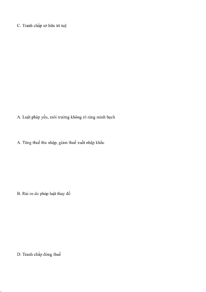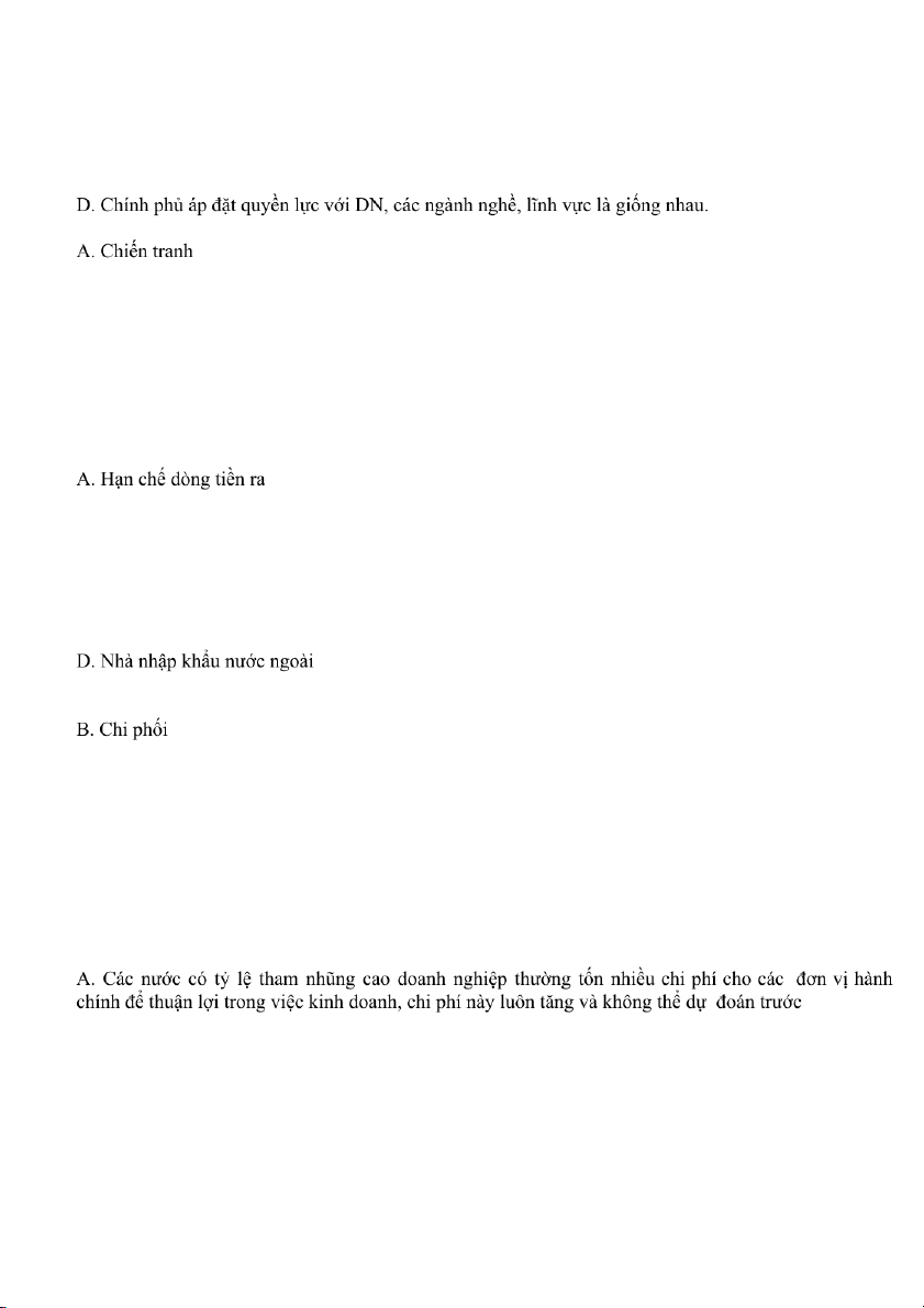 Câu 21: Rủi ro chính trị xảy ra do: Chiến tranh
