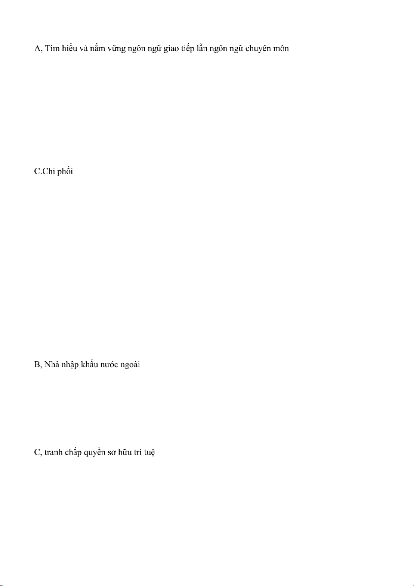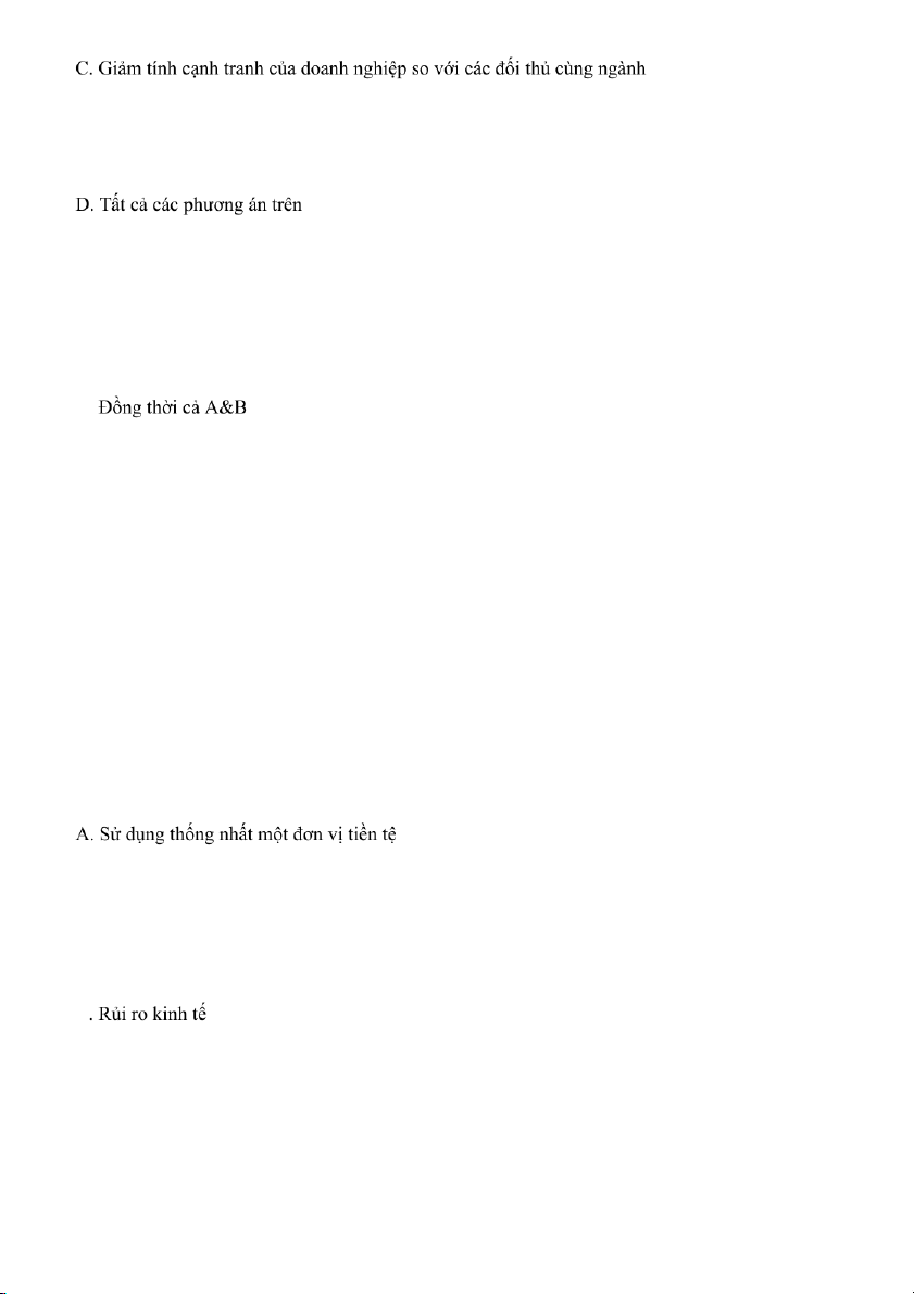 Câu 23: Để phòng ngừa rủi ro giao dịch, doanh nghiệp có thể sử dụng: Chiến thuật Lead/lag Tất cả các đáp án