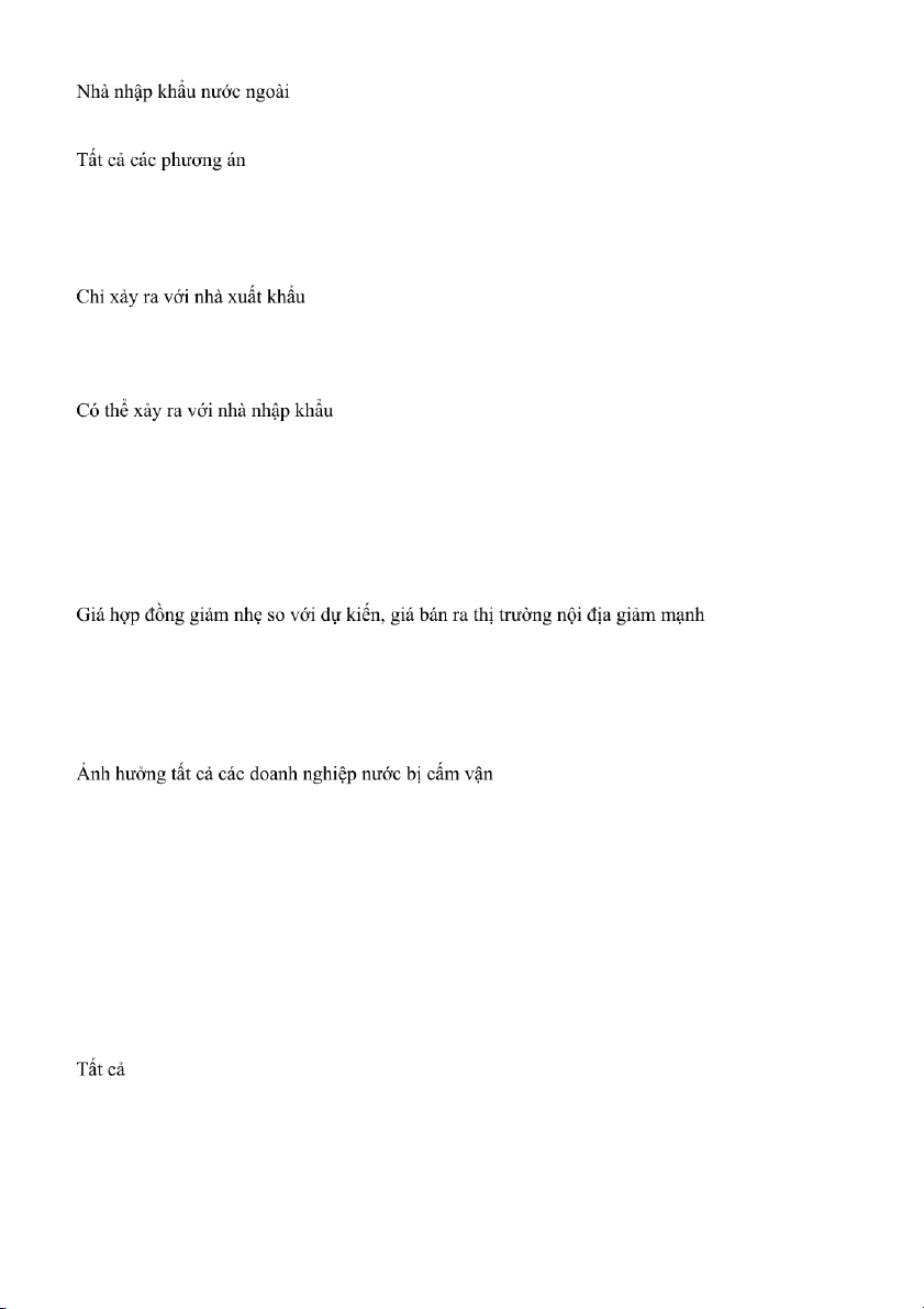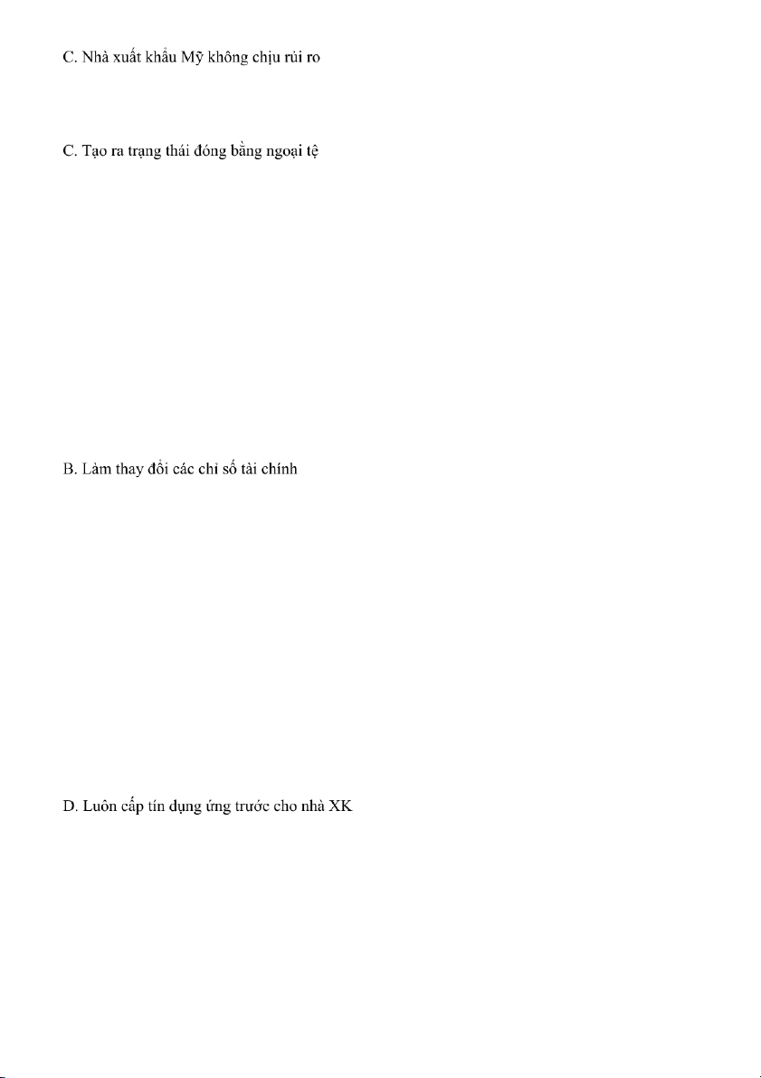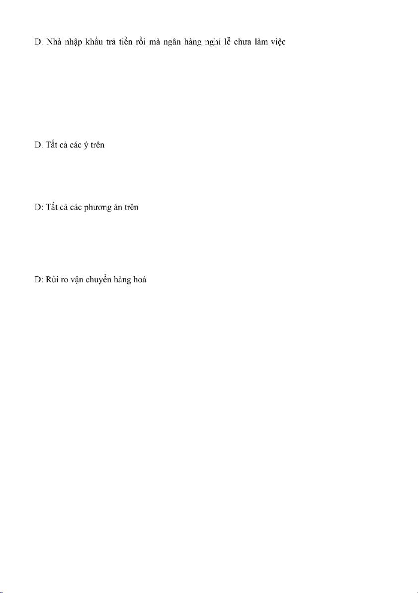 Câu 2: Nhà xuất khẩu có thể gặp các loại rủi ro thanh toán nào sau đây? A. Nhà nhập khẩu hết tiền mà