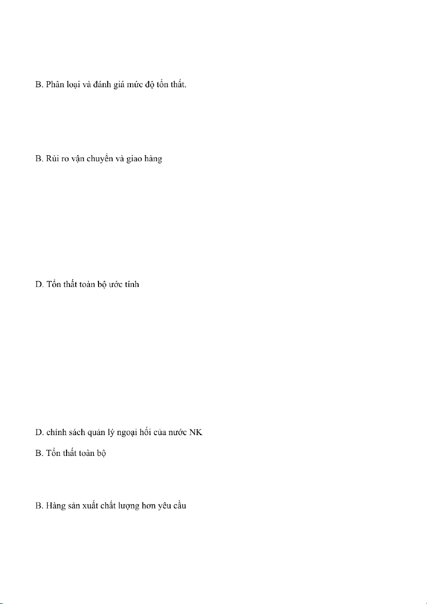 Câu 6: Do gặp phải bão lớn trên đường, toàn bộ hàng hoá đã bị hư hỏng khi đến tay người nhận. Đây là loại rủi ro: A: Rủi ro sản xuất B: Rủi ro hàng hoá