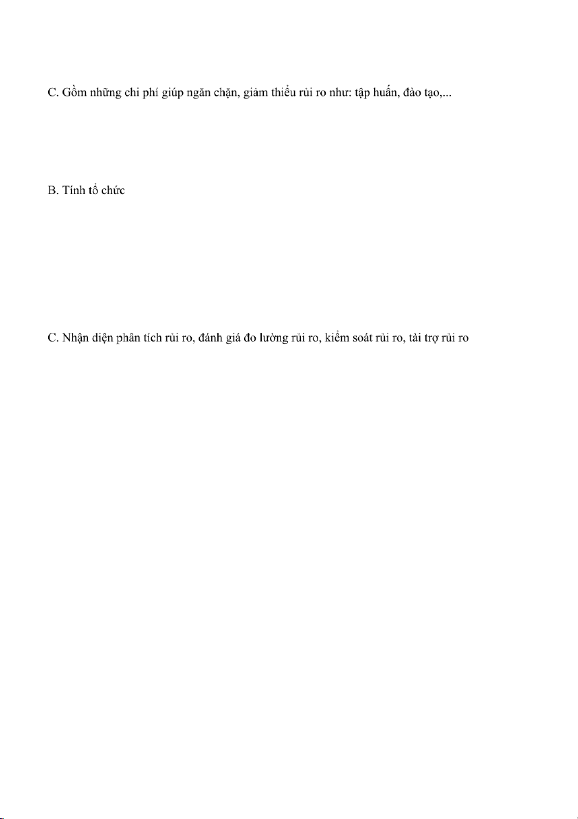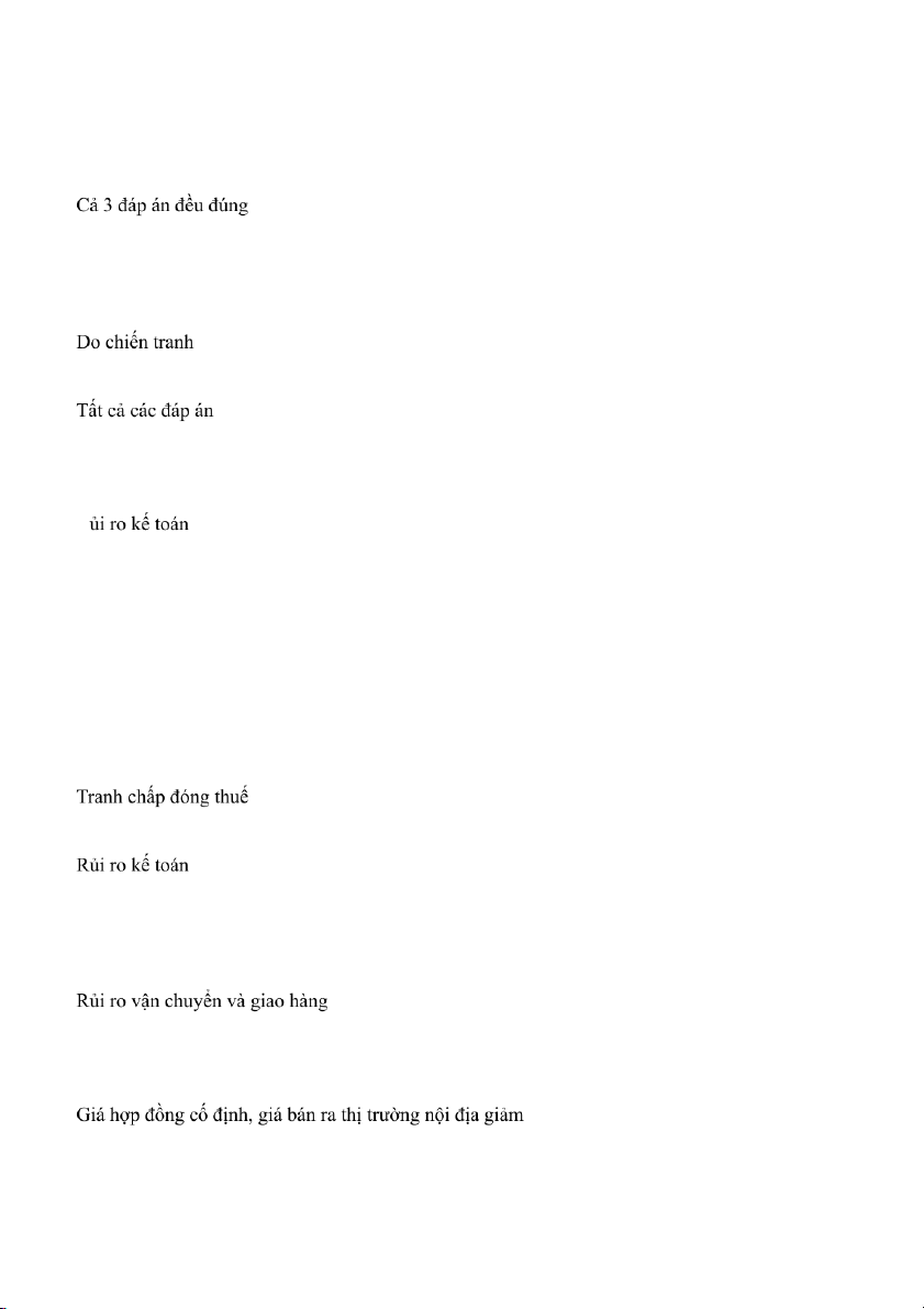 6. Đâu KHÔNG phải rủi ro về giá: A. Rủi ro tỷ giá. B. Rủi ro chi phí giá. C. Rủi ro thanh toán.