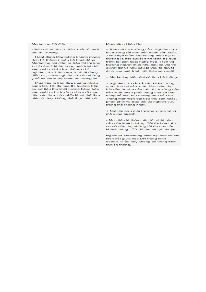 ⅕Câu 1: so sánh sự giống nhau và khác nhau giữa Mkt truyền thống và Mkt hiện đại? từ đó rút ra bản