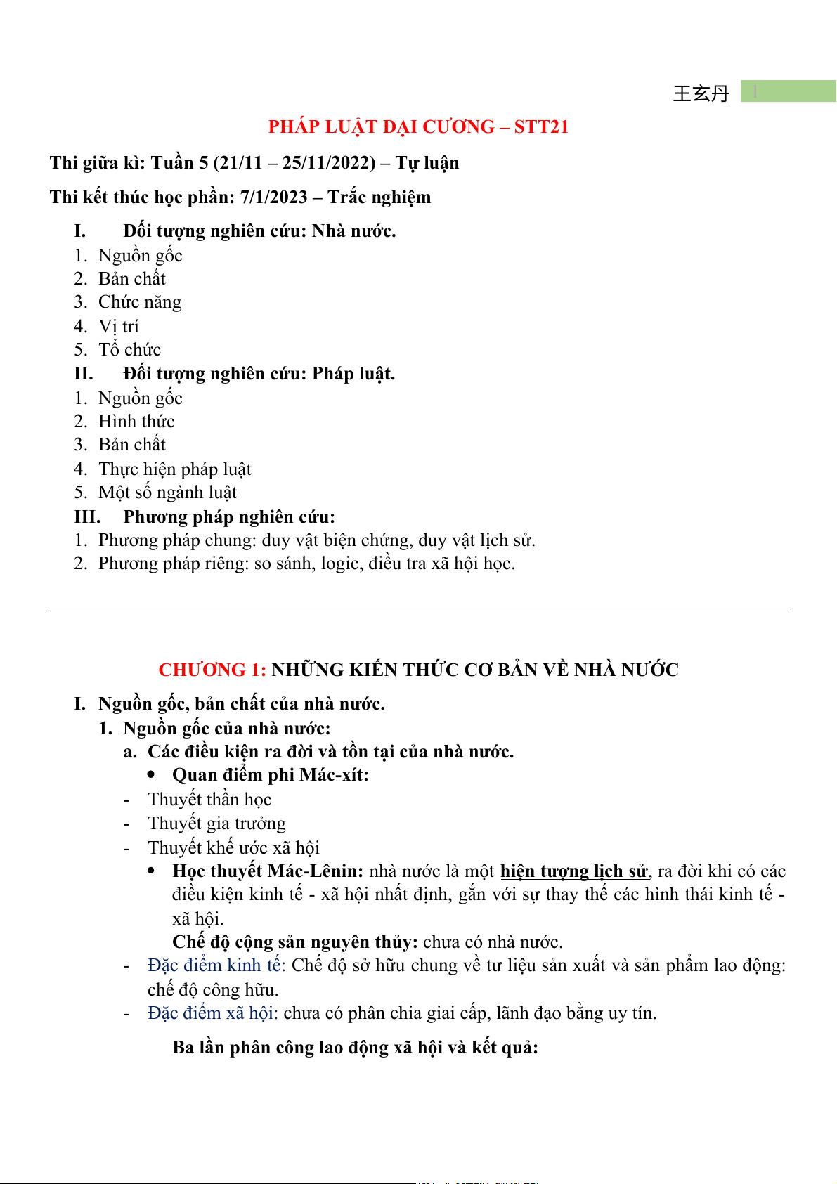 Đối tượng nghiên cứu: Nhà nước. 1. Nguồn gốc 2. Bản chất 3. Chức năng 4. Vị trí 5. Tổ chức II.