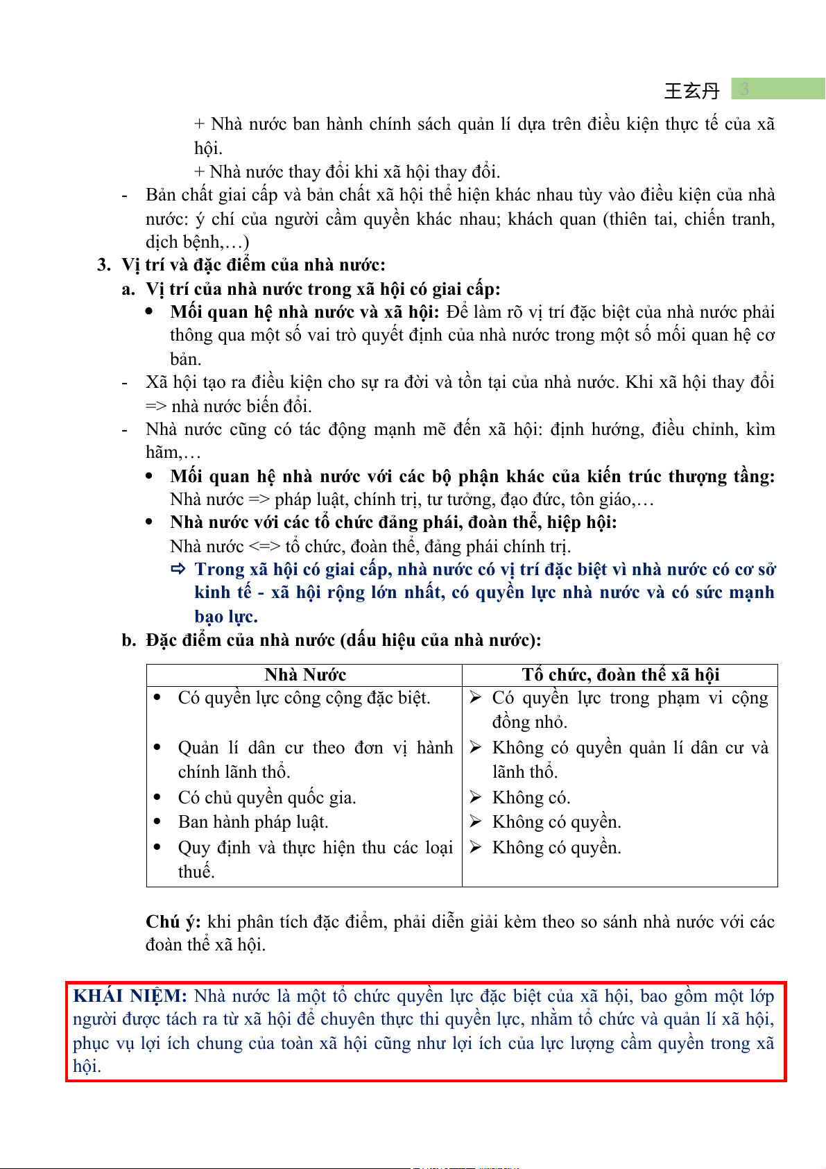 Chú ý: khi phân tích đặc điểm, phải diễn giải kèm theo so sánh nhà nước với các đoàn thể xã hội.