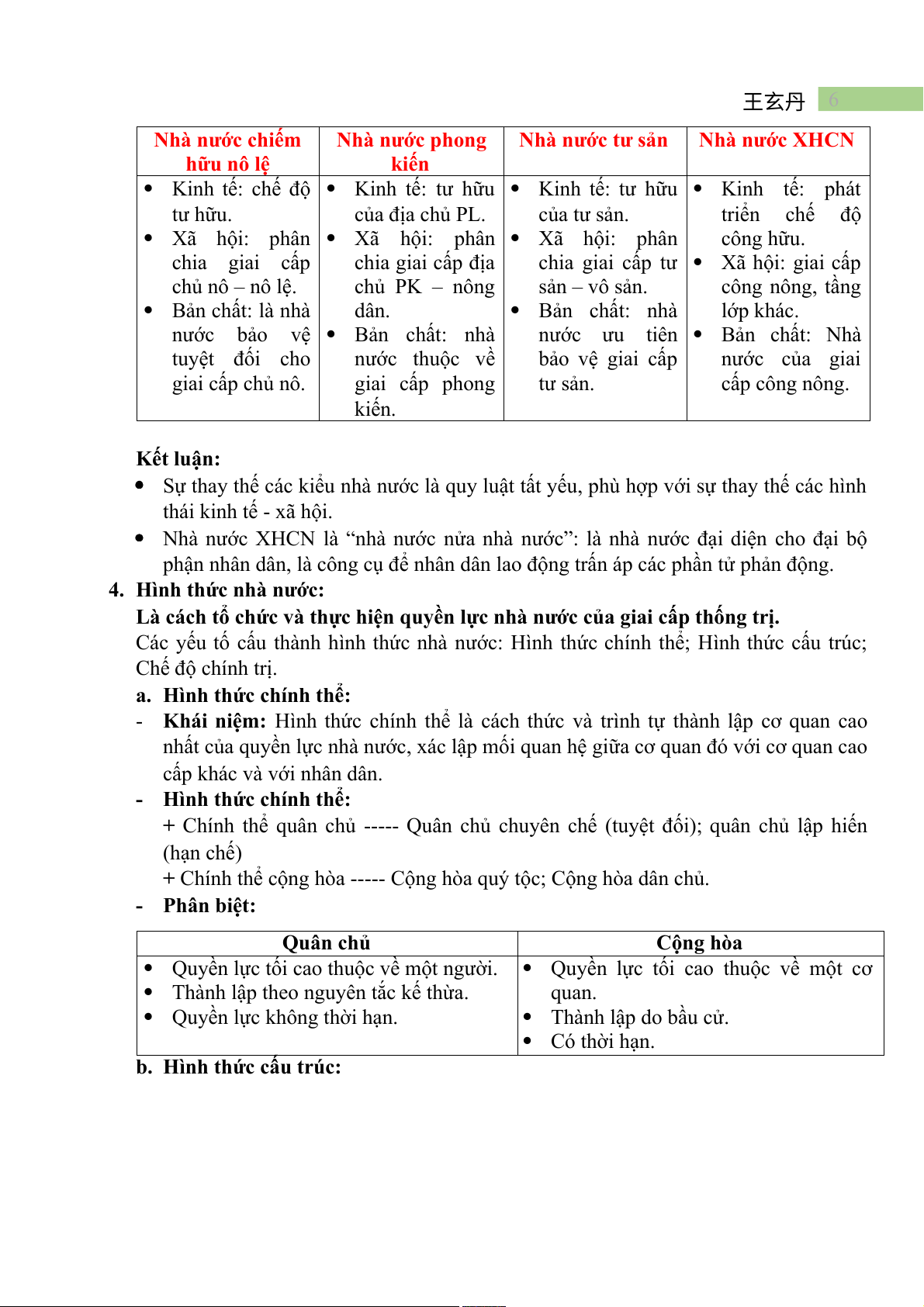3. Các kiểu nhà nước trong lịch sử: 王玄丹 6 Nhà nước chiếm Nhà nước phong Nhà nước tư sản Nhà nước XHCN hữu nô lệ kiến