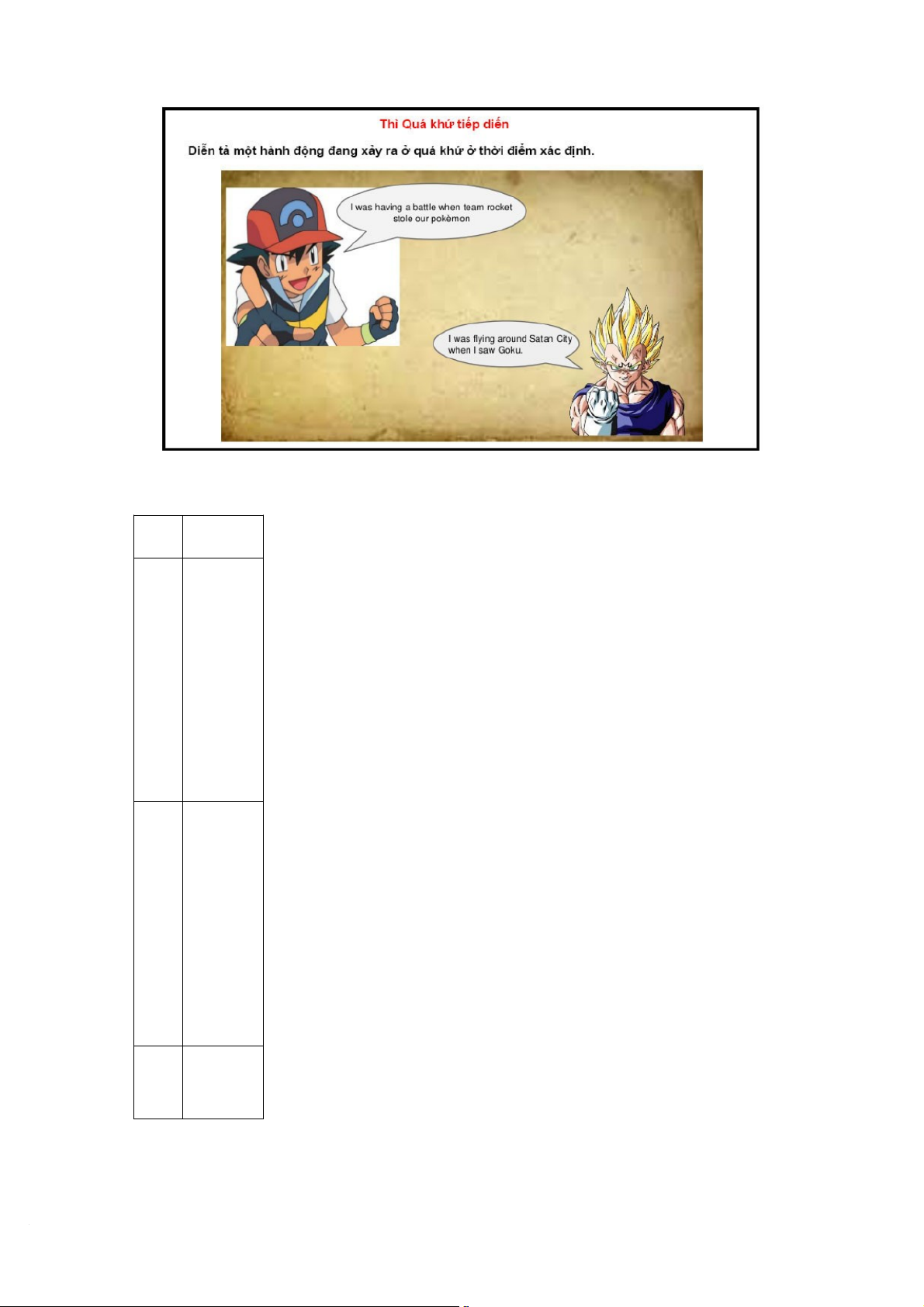 quá khứ nhưng có một hành động khác xen vào. a. Công thức Dạng Công thức câu - ví dụ Khẳn S + g địnhwas/were