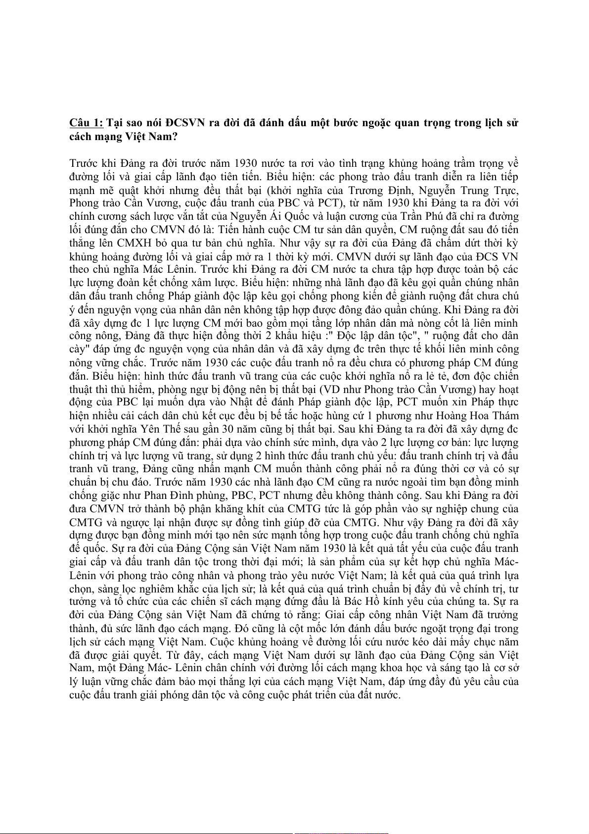 Câu 1: Tại sao nói ĐCSVN ra đời đã đánh dấu một bước ngoặc quan trọng trong lịch sử cách mạng Việt Nam?