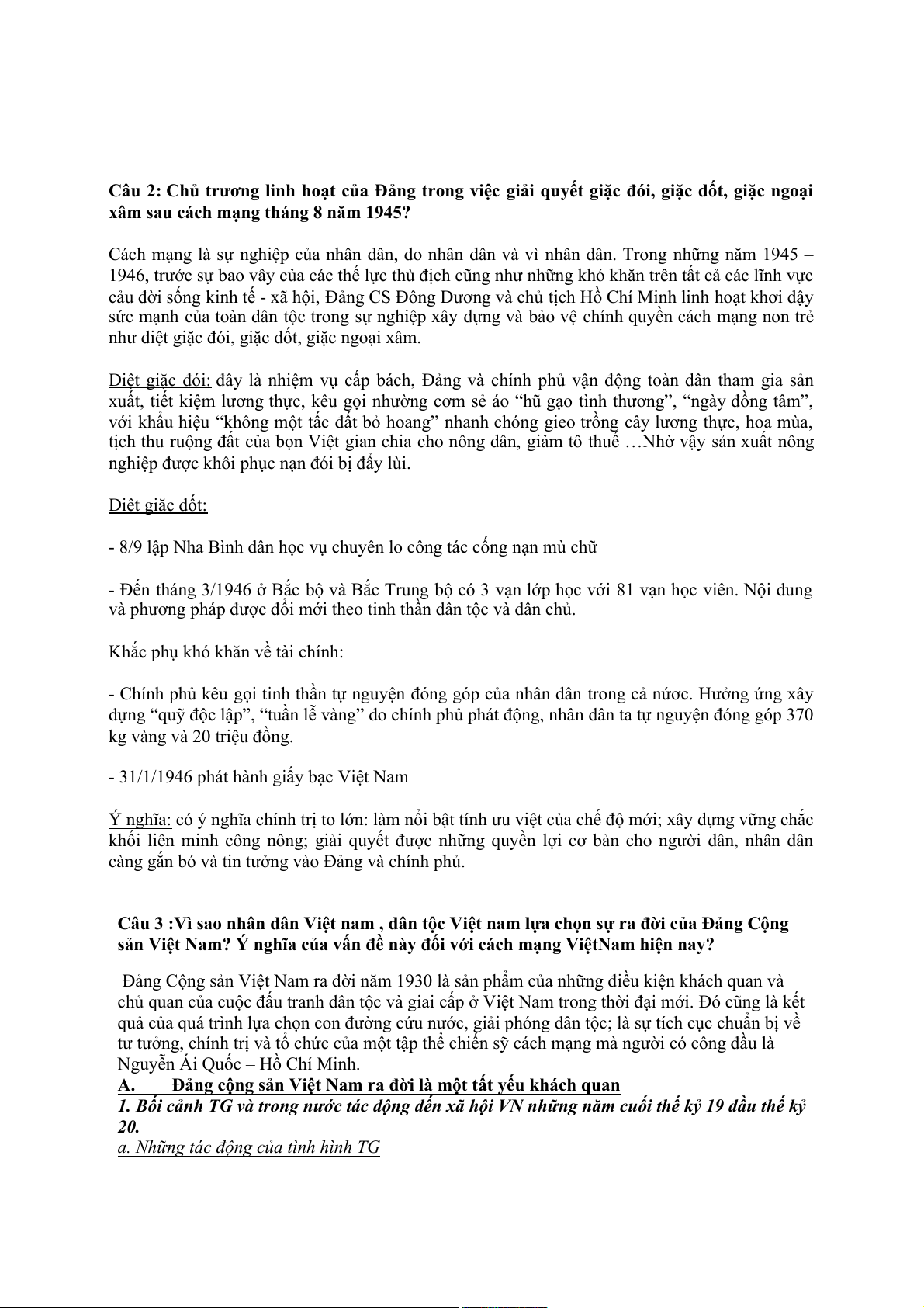 2 : Chủ trương linh hoạt của Đảng trong việc giải quyết giặc đói, giặc dốt, giặc ngoại