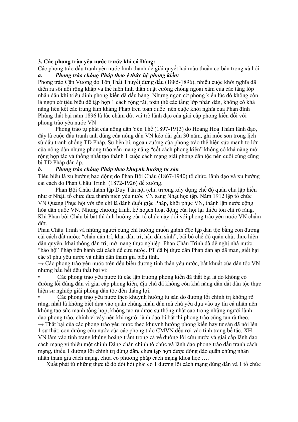 Phong trào Cần Vương, cuộc đấu tranh của PBC và PCT), từ năm 1930 khi Đảng ta ra đời với