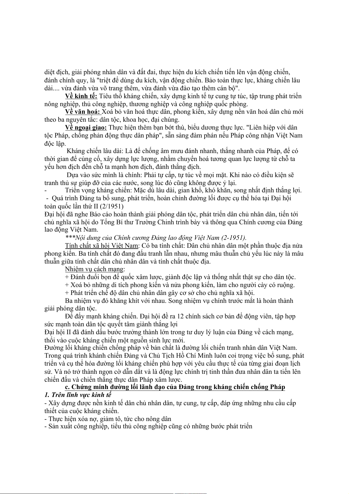 c. Chứng minh đường lối lãnh đạo của Đảng trong kháng chiến chống Pháp