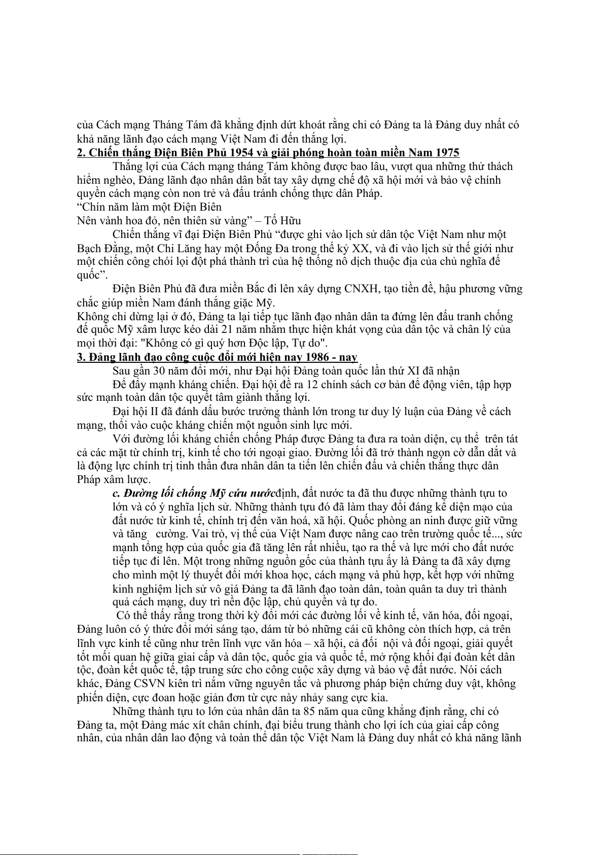 kiểm nghiệm qua lịch sử trong suốt 85 năm đấu tranh anh dũng dưới sự lãnh đạo của Đảng.