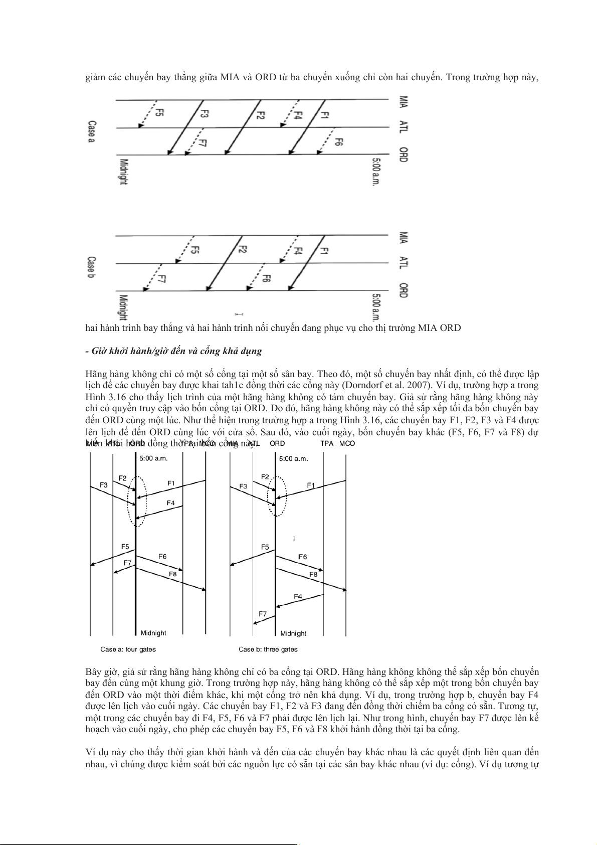đến ORD vào một thời điểm khác, khi một cổng trở nên khả dụng. Ví dụ, trong trường hợp b, chuyến bay F4