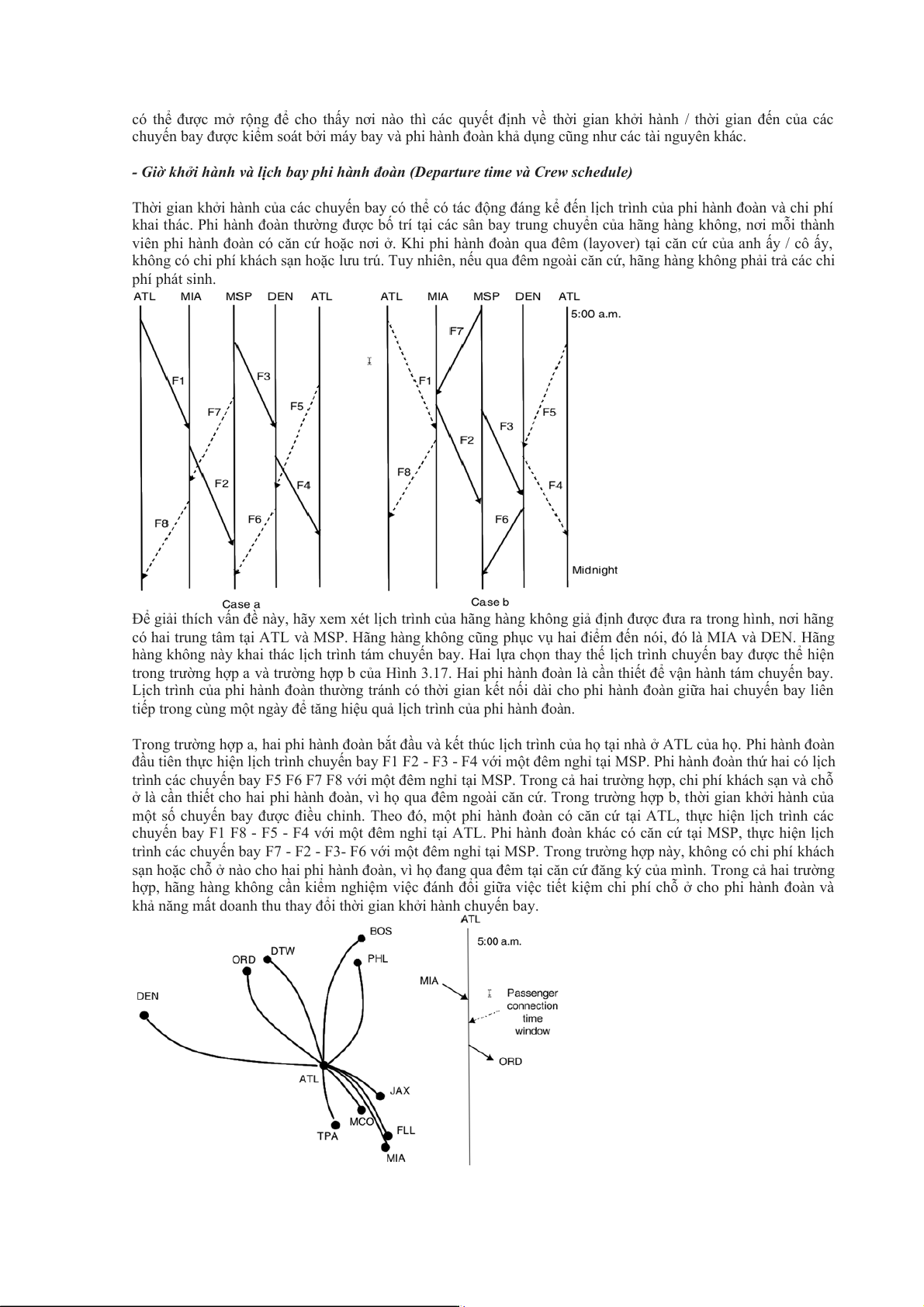 trong trường hợp a và trường hợp b của Hình 3.17. Hai phi hành đoàn là cần thiết để vận hành tám chuyến bay.