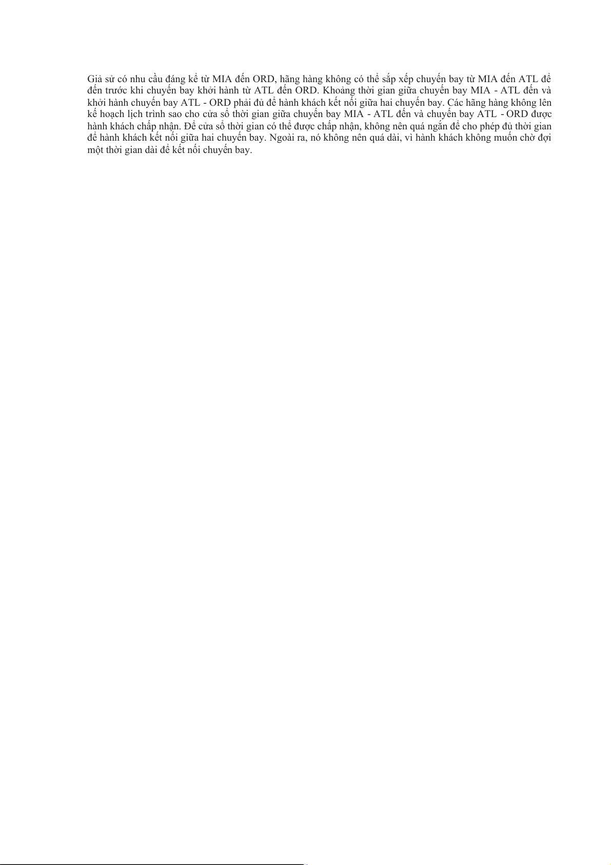 Giả sử có nhu cầu đáng kể từ MIA đến ORD, hãng hàng không có thể sắp xếp chuyến bay từ MIA đến ATL để