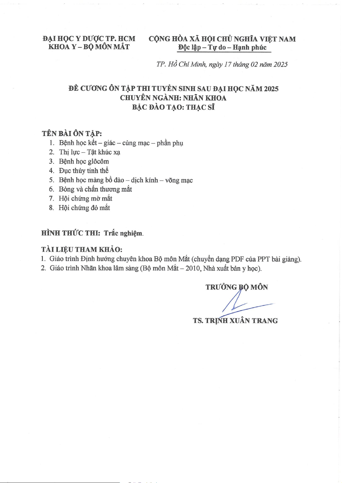 Ôn Tập Thi Tuyển Sinh Sau Đại Học 2025 - Nhãn Khoa | Đại học Y Dược Thành phố Hồ Chí Minh